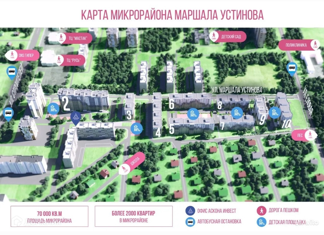 В шаговой доступности остановки общественного транспорта, школы, садики, ТЦ и больницы.