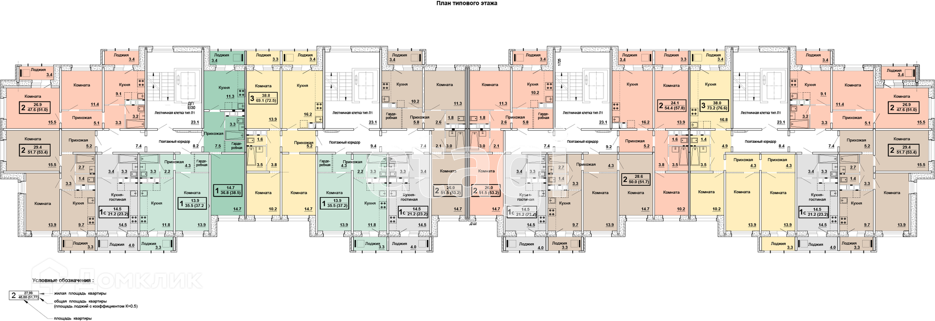 Общая площадь 57.8 м2