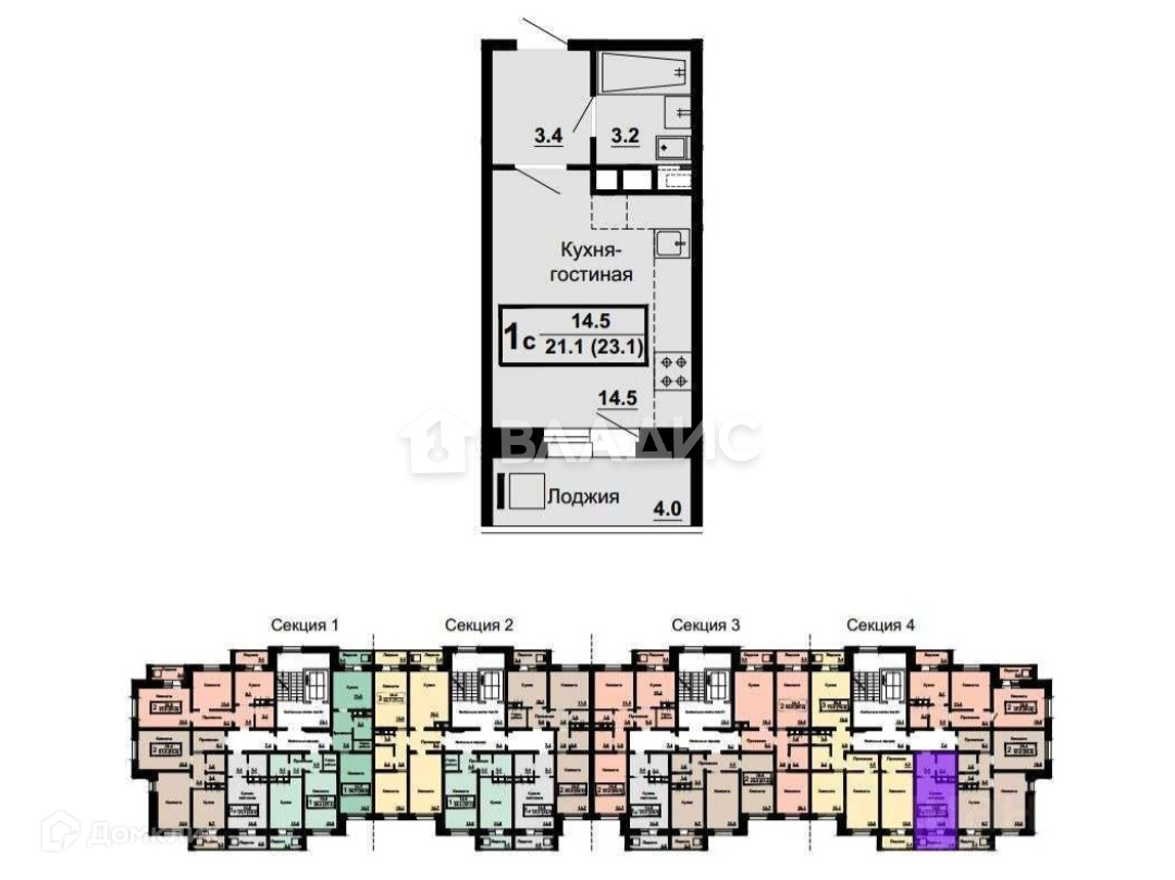 Площадью 23,1 кв.м. + огромная лоджия, будет утеплена