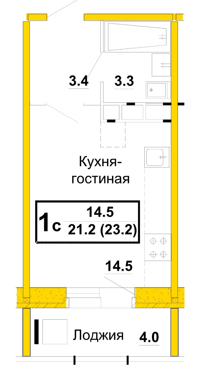 Общая площадь 23.2 м2