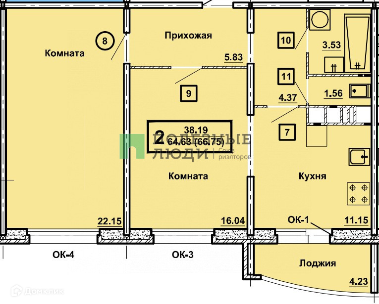Общая площадь 69 м2