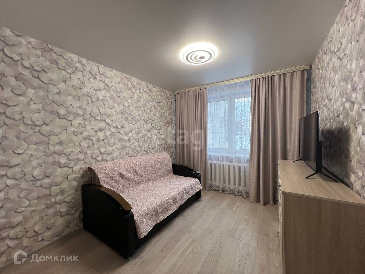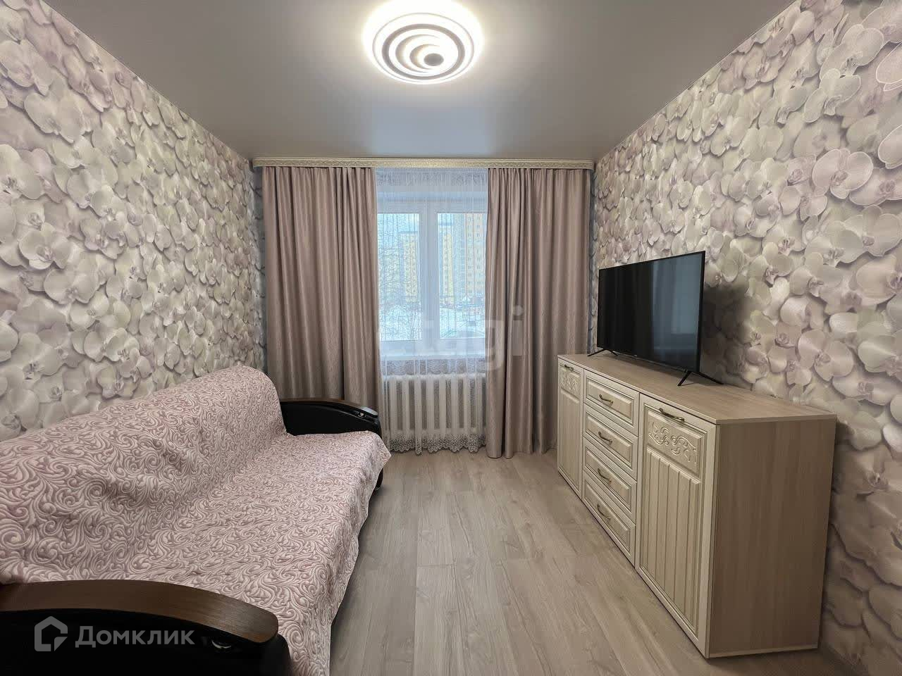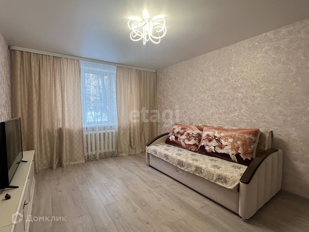В квартире останется вся мебель и техника (кроме телевизоров): кухонный гарнитур со встроенной варочной панель. и духовым шкафом, холодильник, обеденный стол и стулья, шкаф в коридоре с прихожей и шкаф в комнате, диваны, комод, тумба, стиральная машина, занавески.