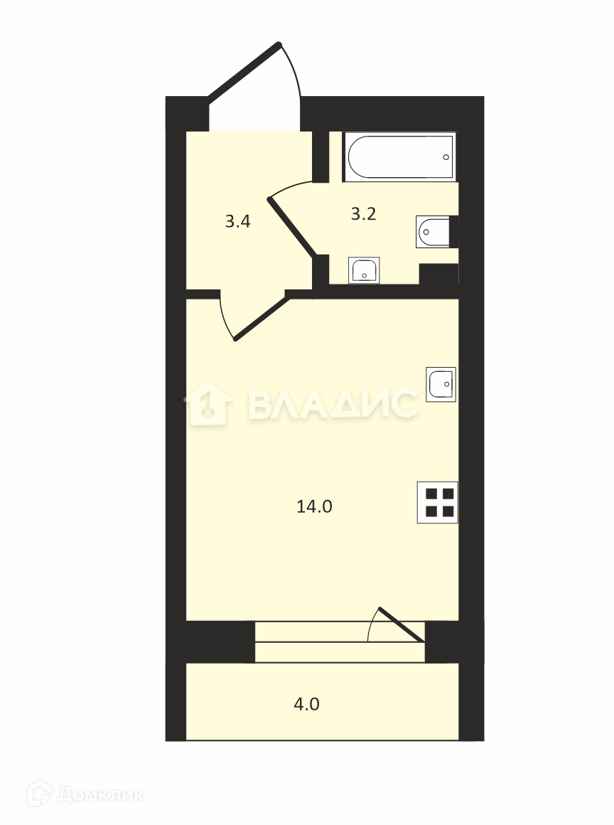 Общая площадь 25.1 м2