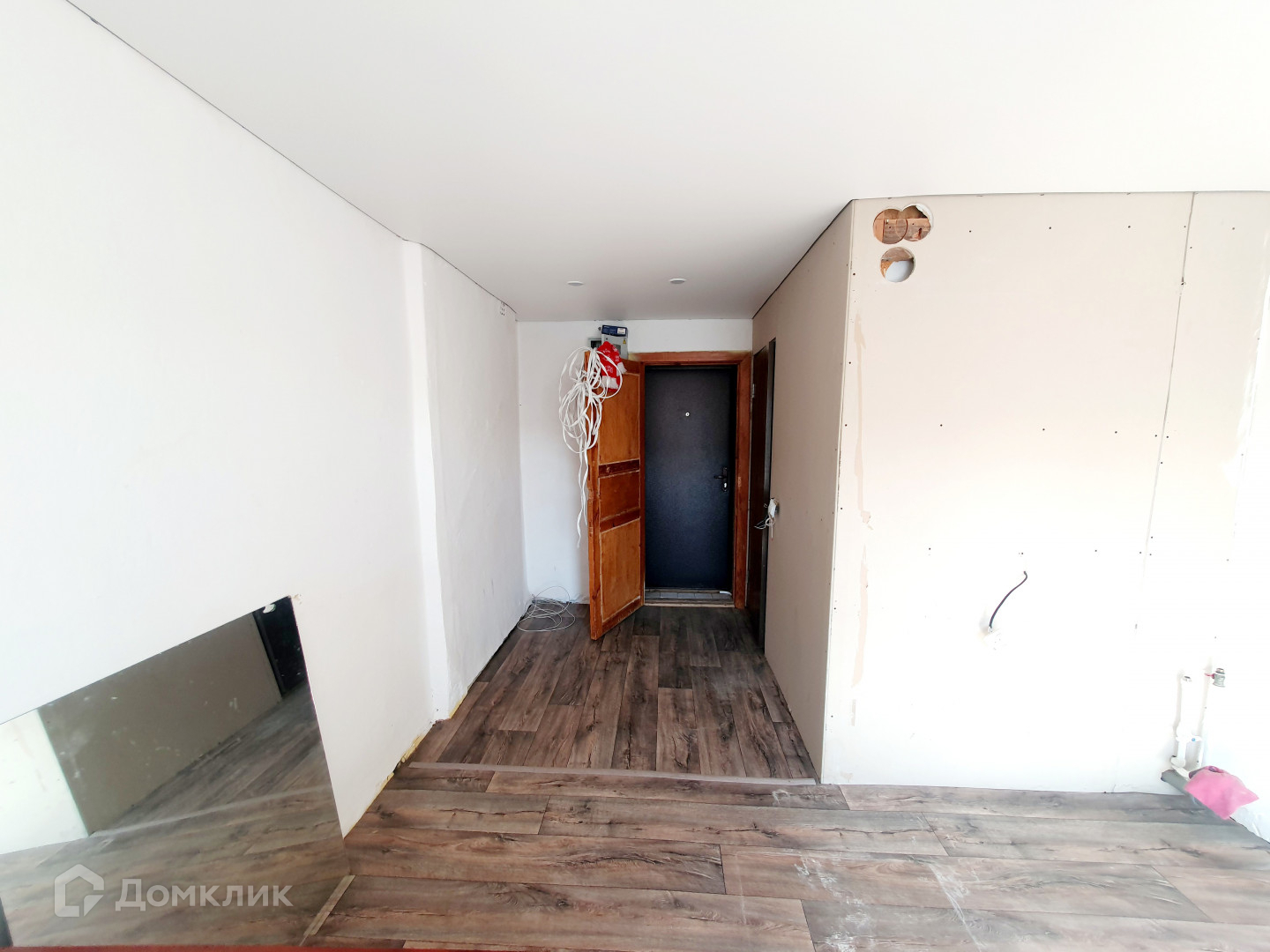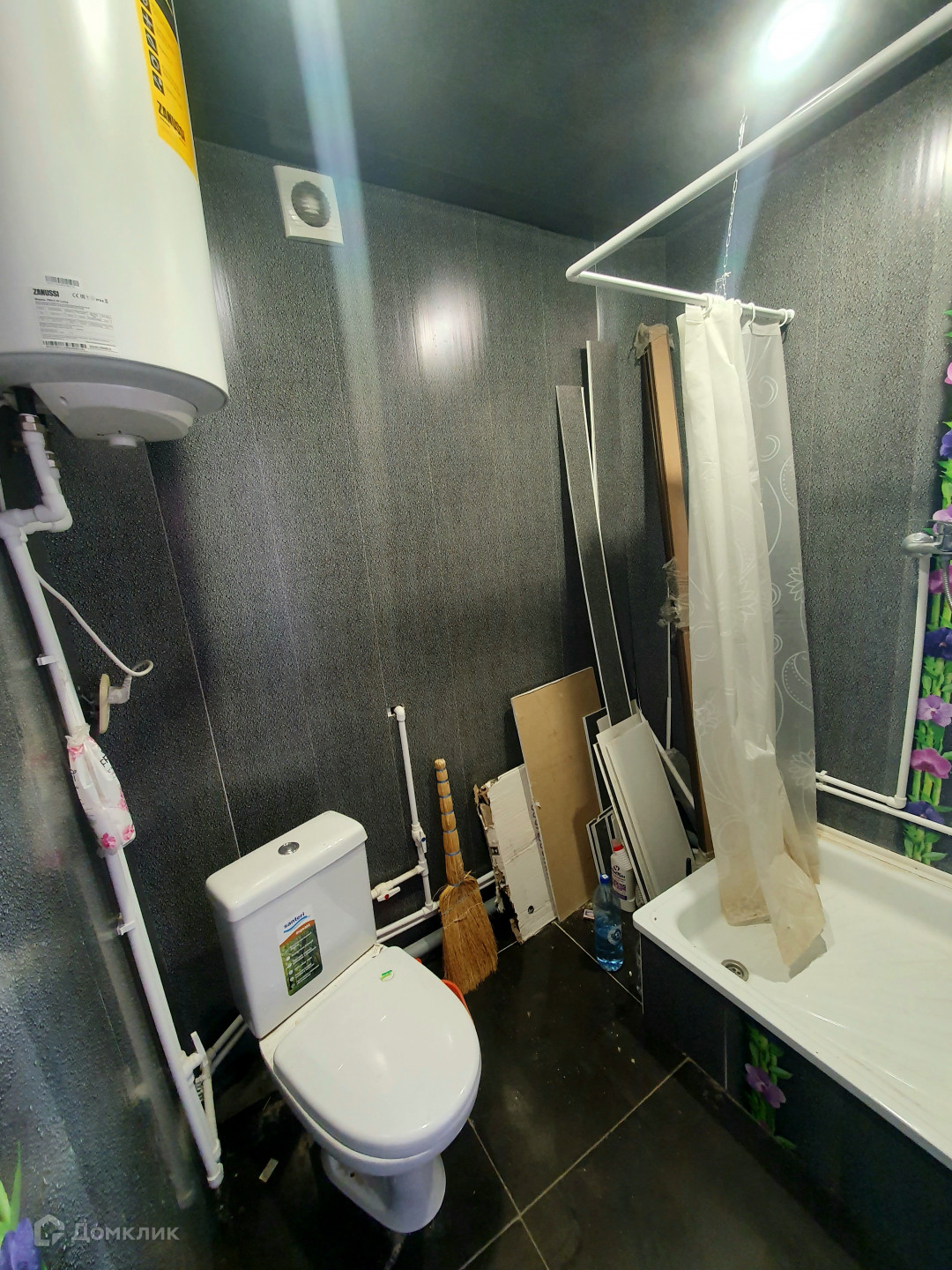 В квартире произаеден ремонт: установленно пластиковое окно; оштукатурены стены; на полу новый ленолиум; новая входная дверь; в ванной поменяны все трубы; пол плитка-с подогревом; стены панели ПВХ; новый водонагреватель.