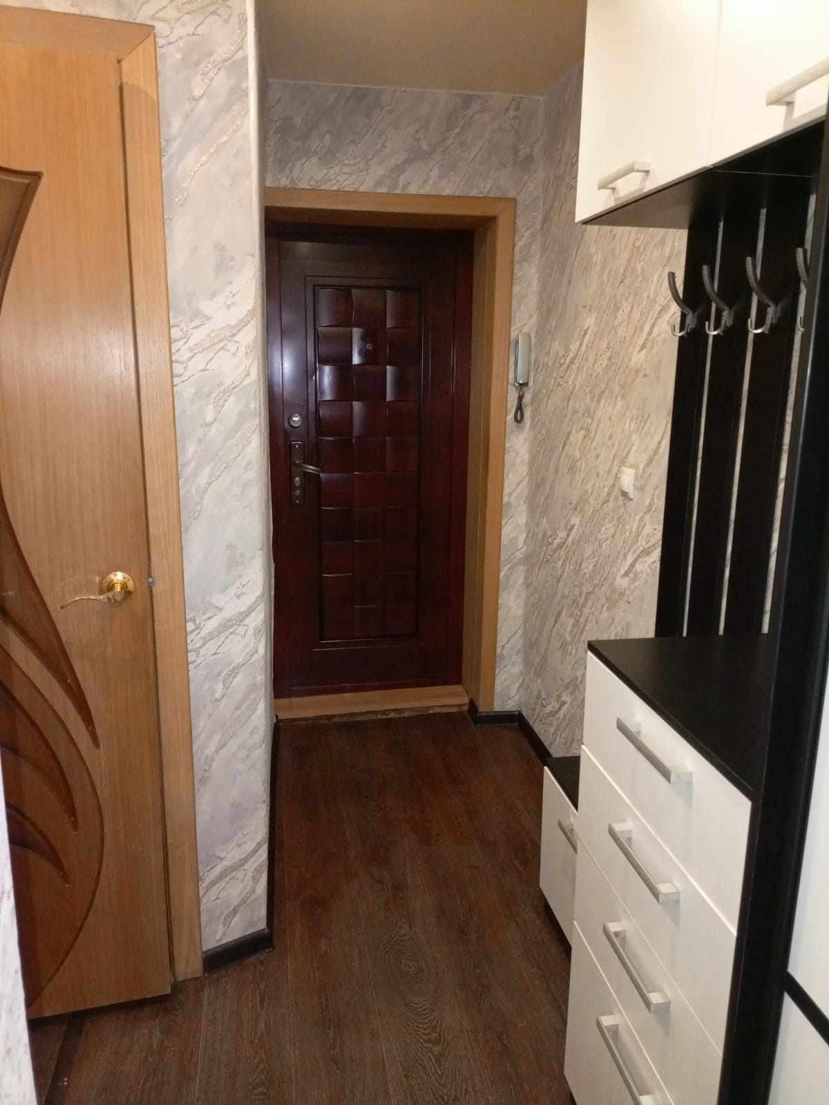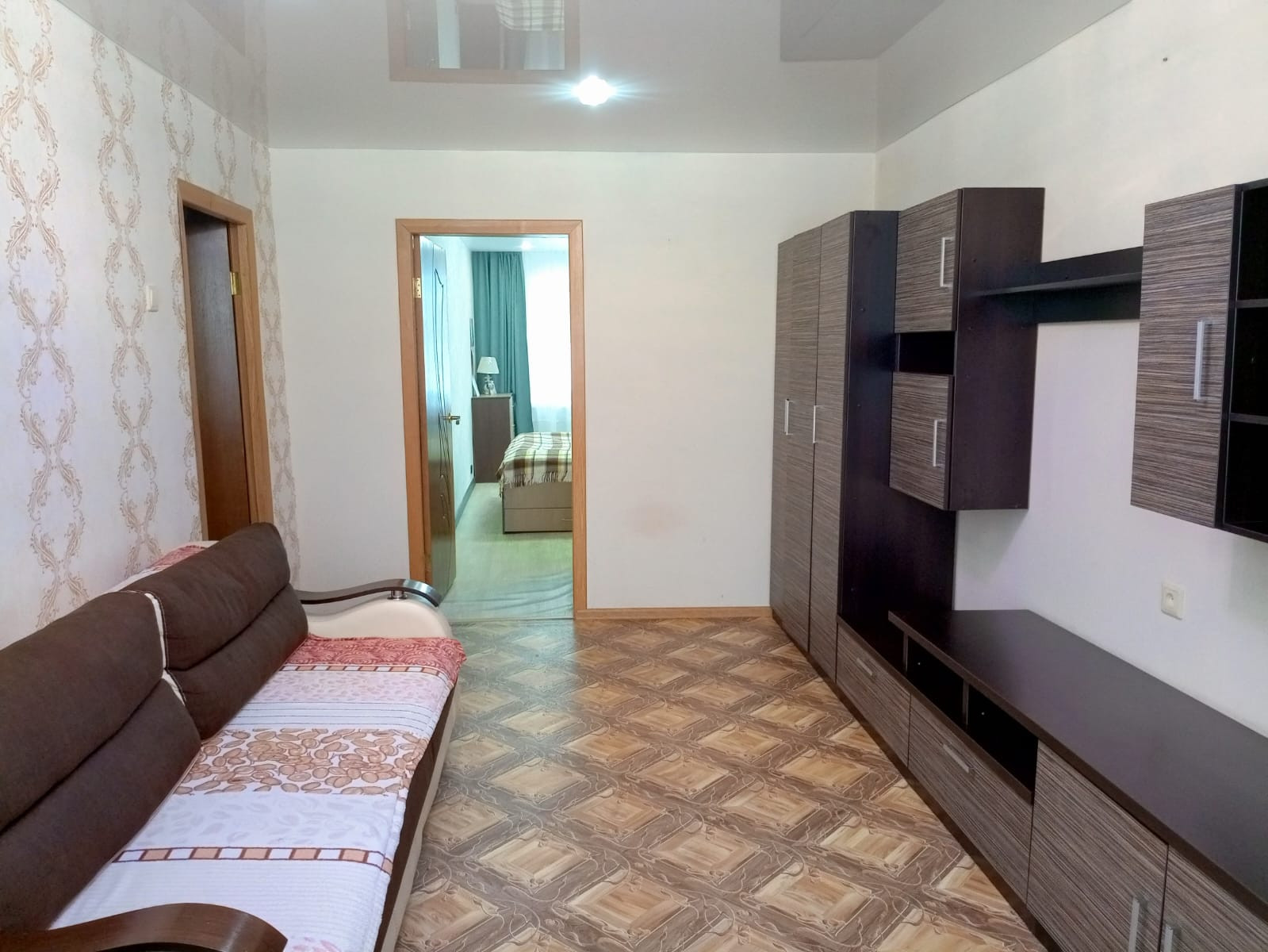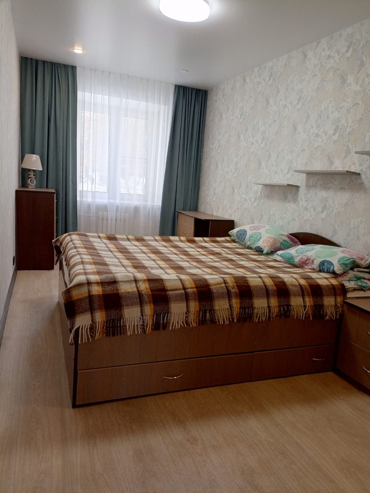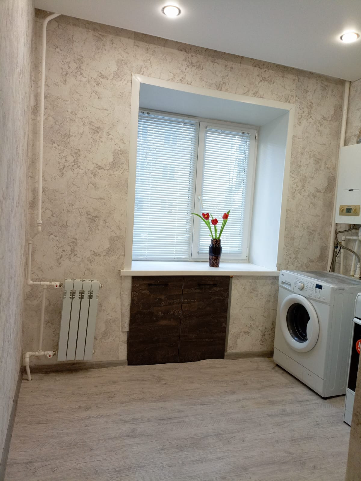 Во всей квартире пластиковые окна, новые чугунные батареи, двери, натяжные потолки, хорошие обои и освещение.