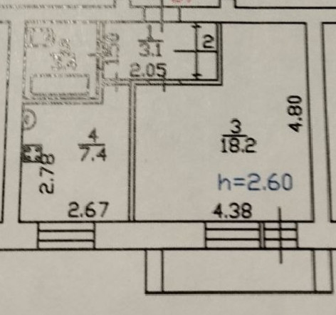 Жилая площадь 18.2 м2