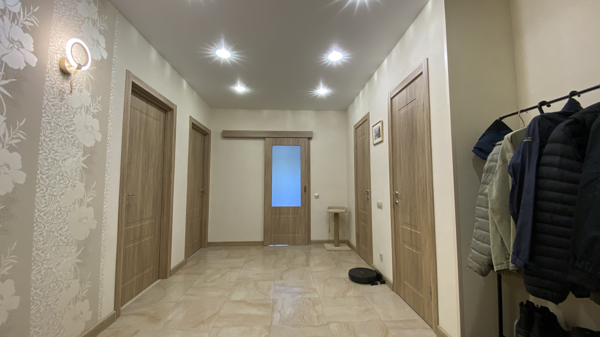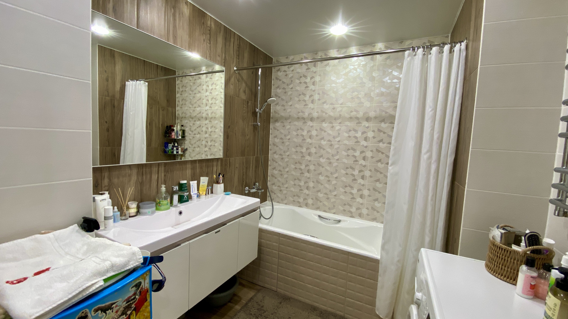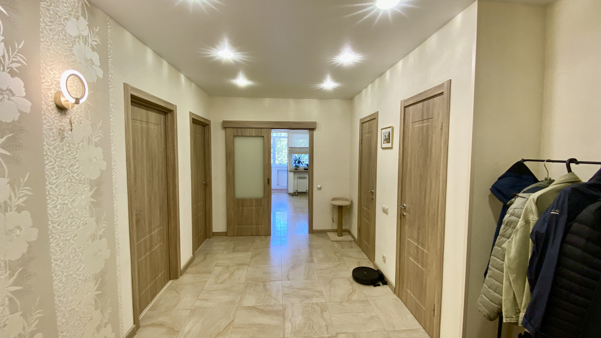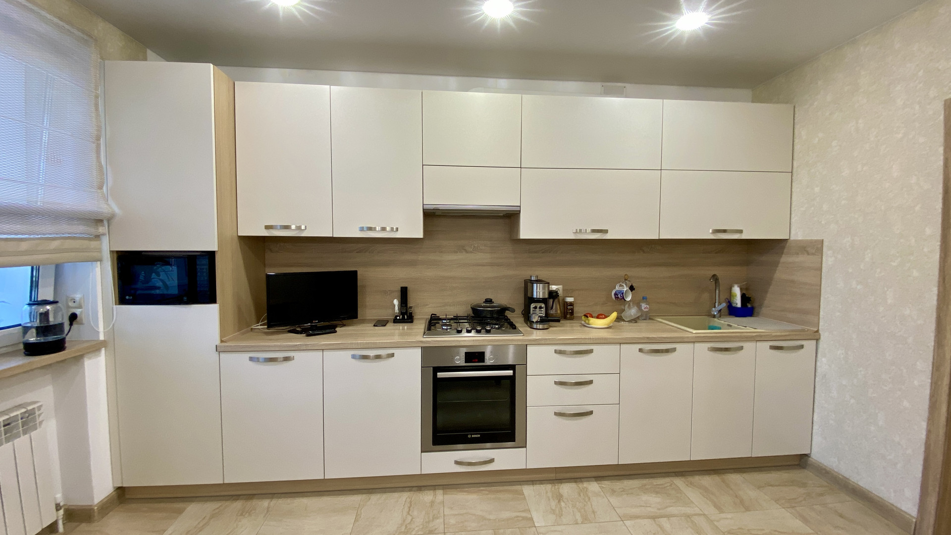 В квартире свежий дизайнерский ремонт, пол на кухне, в прихожей, ванне и туалете в кафеле с системой подогрева от двухконтурного котла Proterm Jaguar, в комнатах ламинат, все окна ПВХ, ванная комната и туалет в кафеле. На кухне новый гарнитур со встроенной техникой. Качественная электропроводка с УЗО и отдельными силовыми кабелями для духового шкафа и стиральной машины. В ванной современная сантехника Roca и гарнитур, в туалете инсталляция Roca и гигиенический душ. По договорённости, оставим мебель в комнатах. Интернет, Wi-Fi и кабельное телевидение с цифровыми каналами. Очень низкие коммунальные платежи, которые обеспечивает газовый котёл – комфортную температуру в квартире вы сможете регулировать сами в любое врем года!