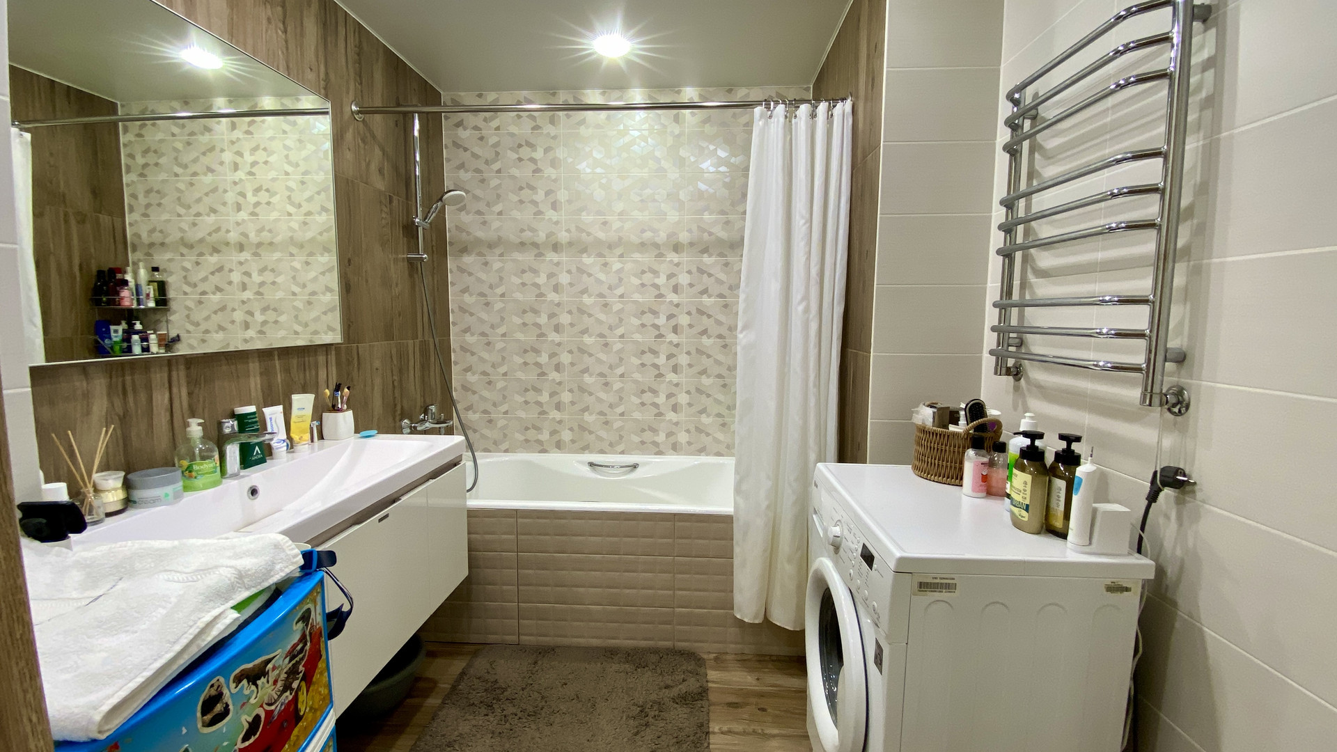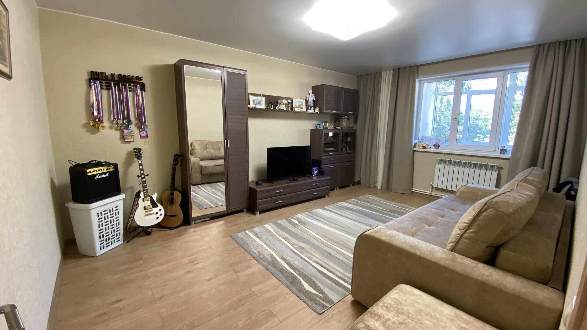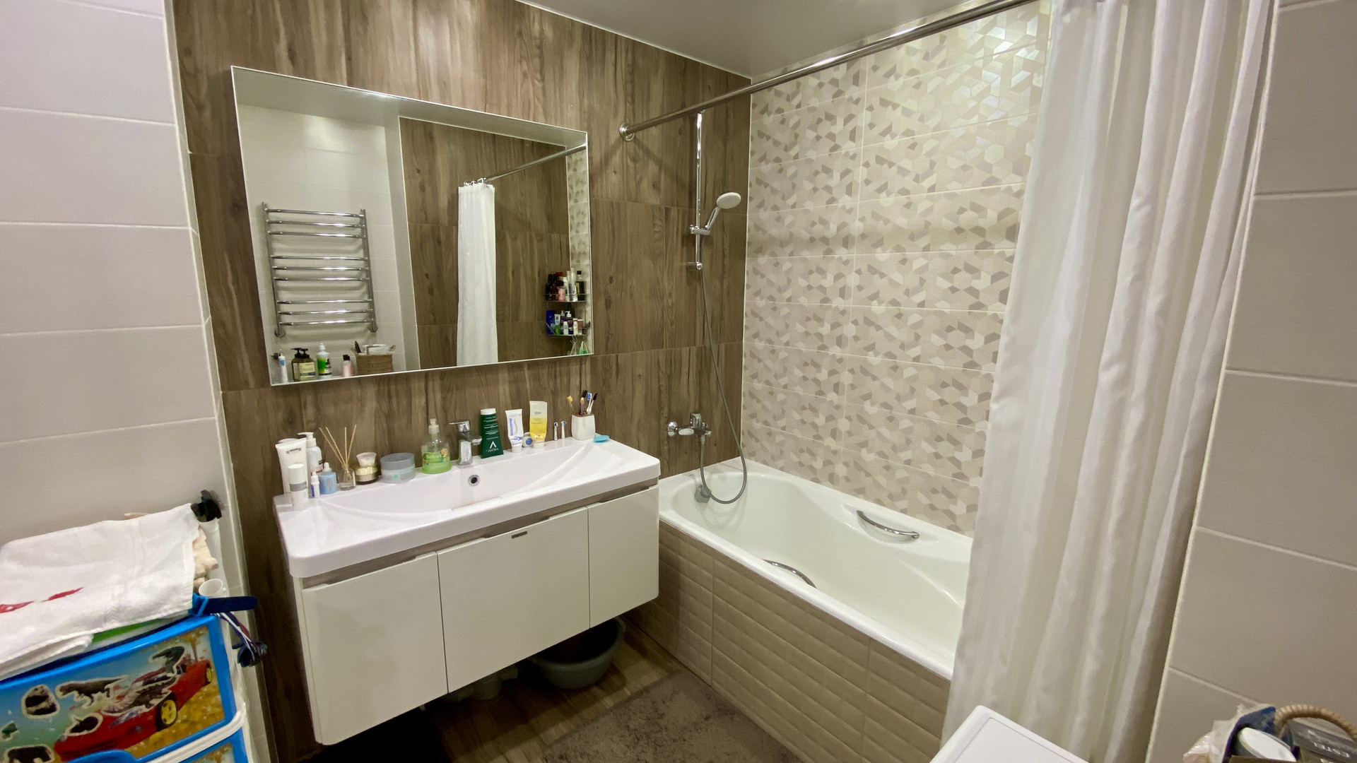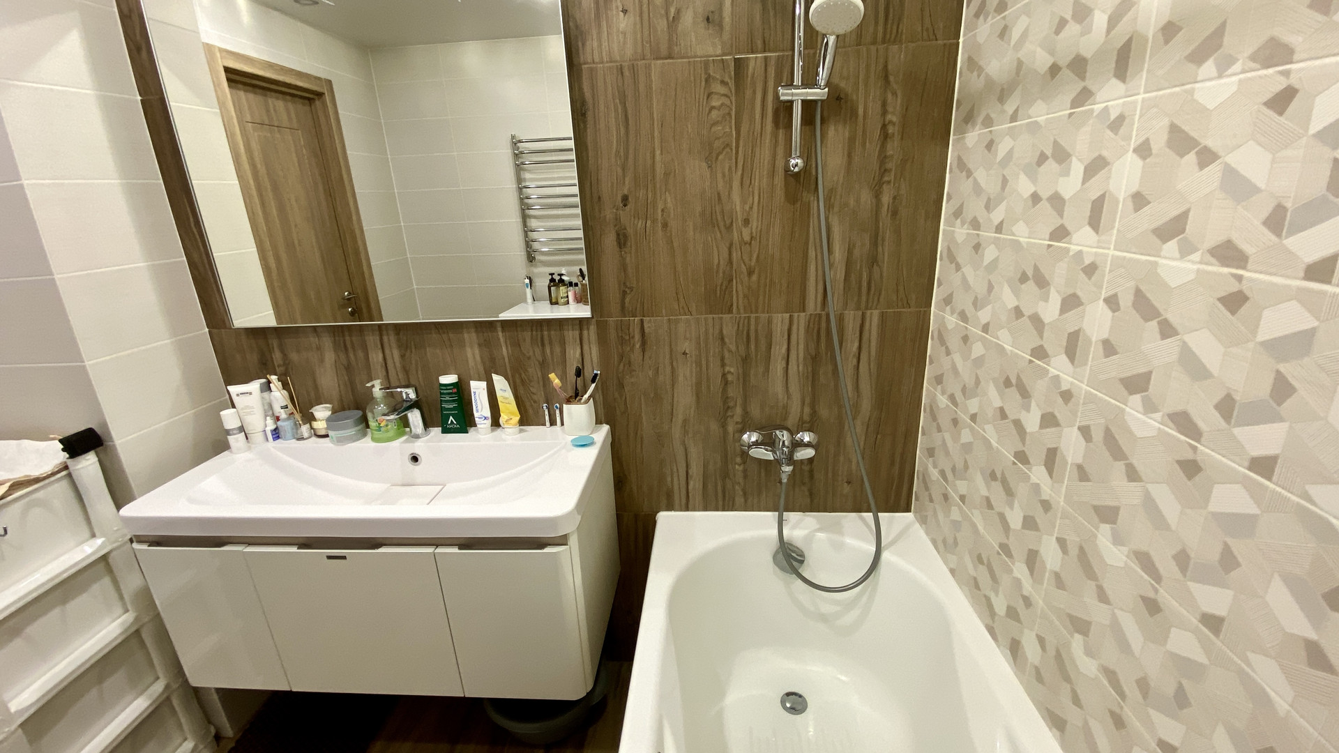 В квартире свежий дизайнерский ремонт, пол на кухне, в прихожей, ванне и туалете в кафеле с системой подогрева от двухконтурного котла Proterm Jaguar, в комнатах ламинат, все окна ПВХ, ванная комната и туалет в кафеле. На кухне новый гарнитур со встроенной техникой. Качественная электропроводка с УЗО и отдельными силовыми кабелями для духового шкафа и стиральной машины. В ванной современная сантехника Roca и гарнитур, в туалете инсталляция Roca и гигиенический душ. По договорённости, оставим мебель в комнатах. Интернет, Wi-Fi и кабельное телевидение с цифровыми каналами. Очень низкие коммунальные платежи, которые обеспечивает газовый котёл – комфортную температуру в квартире вы сможете регулировать сами в любое врем года!