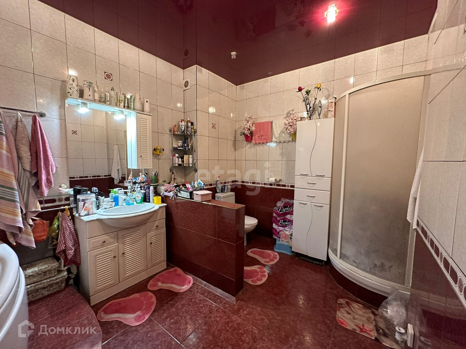 Ванная комната совмещена с санузлом, установлена душевая кабинка и угловая ванна!