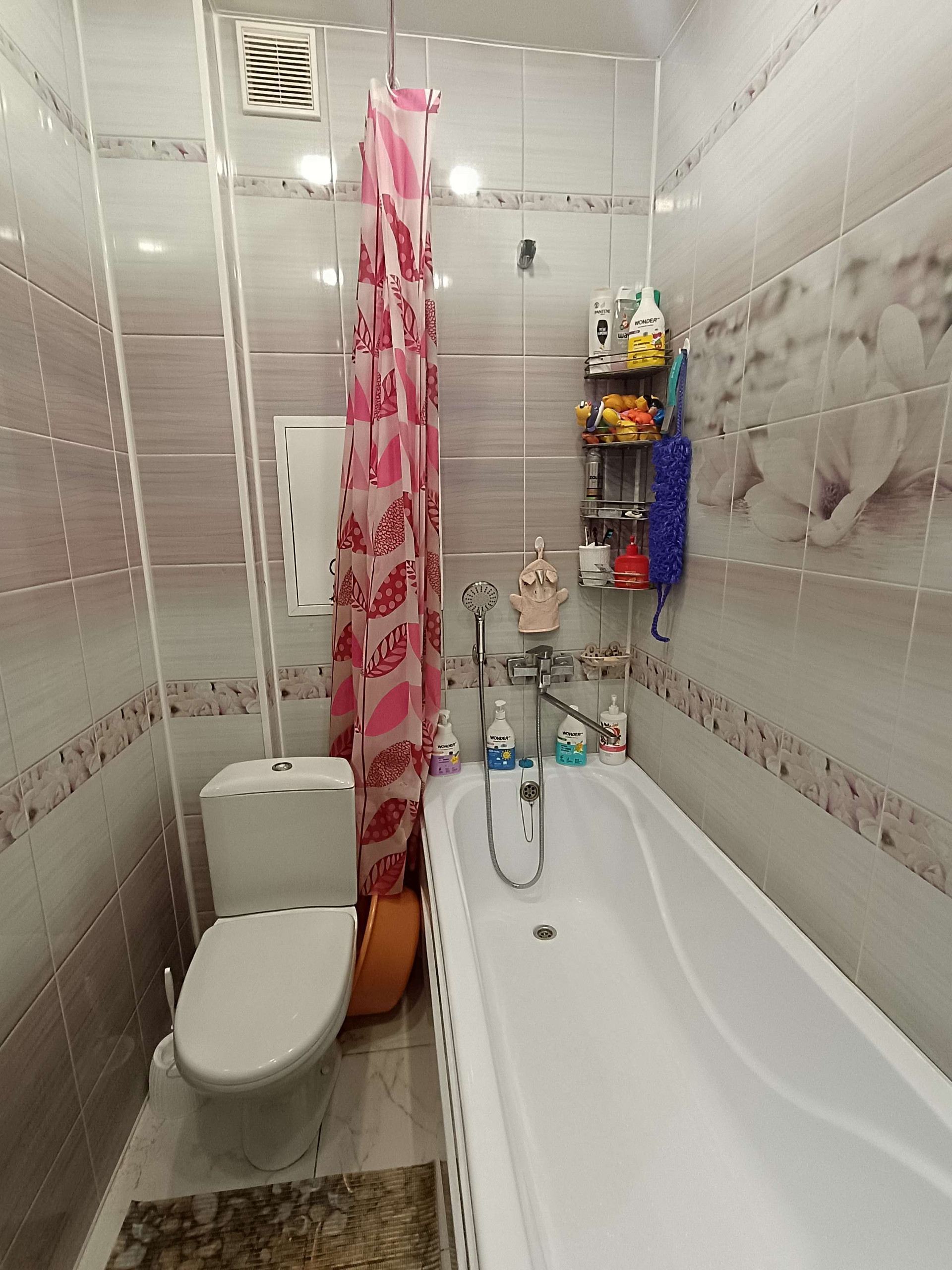Совмещенный санузел в отличном состоянии. Полностью выполнен современный качественный ремонт из дорогих материалов! Отделка стен новой современной плиткой, пол-кафель. (под КЛЮЧ).
