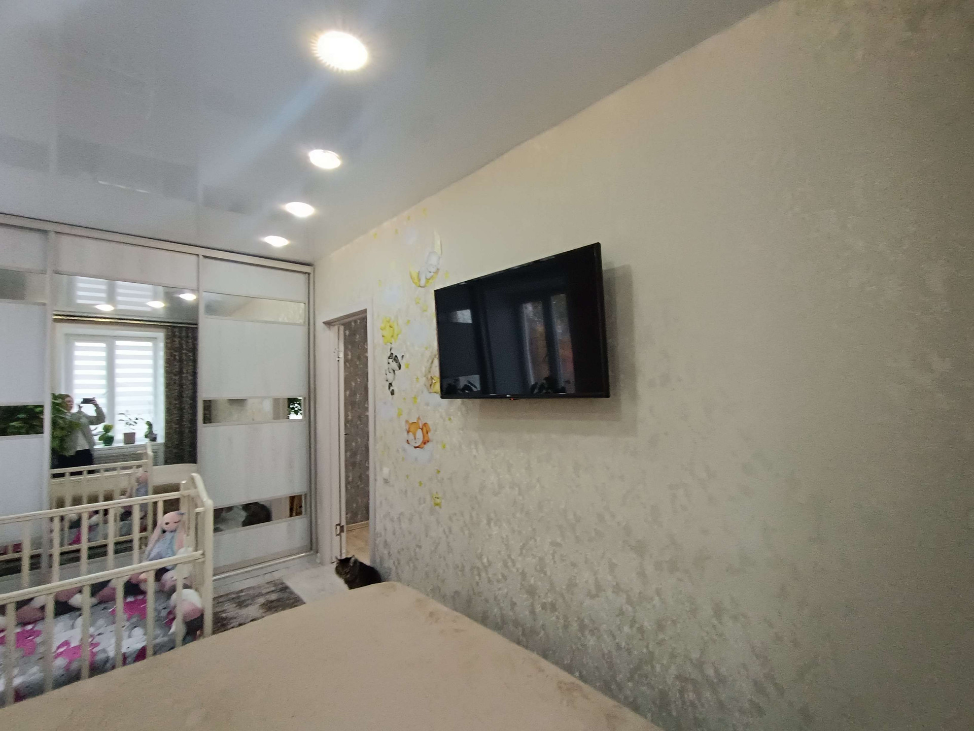 Отделка стен современными качественными обоями. Все выполнено в одной цветовой гамме, что создает еще более уютную атмосферу!