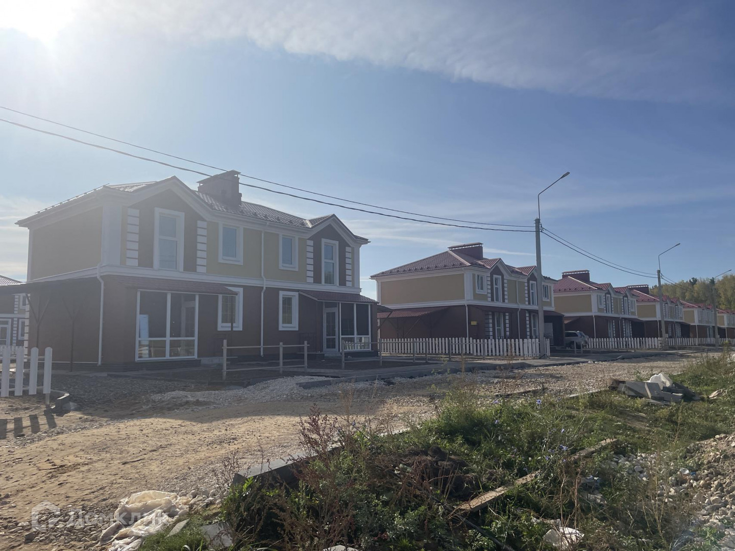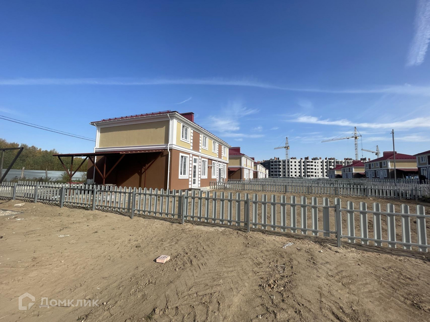 Общее строение на два блокированных дома (дуплекс), т.е. только одни соседи. Свой участок прямоугольный 4,2 сотки, достаточно места для дизайна участка. Есть навес под автомобиль, который оборудуется под гараж.