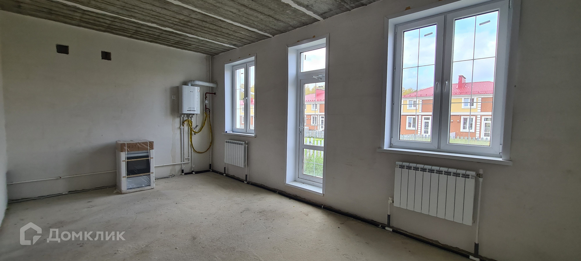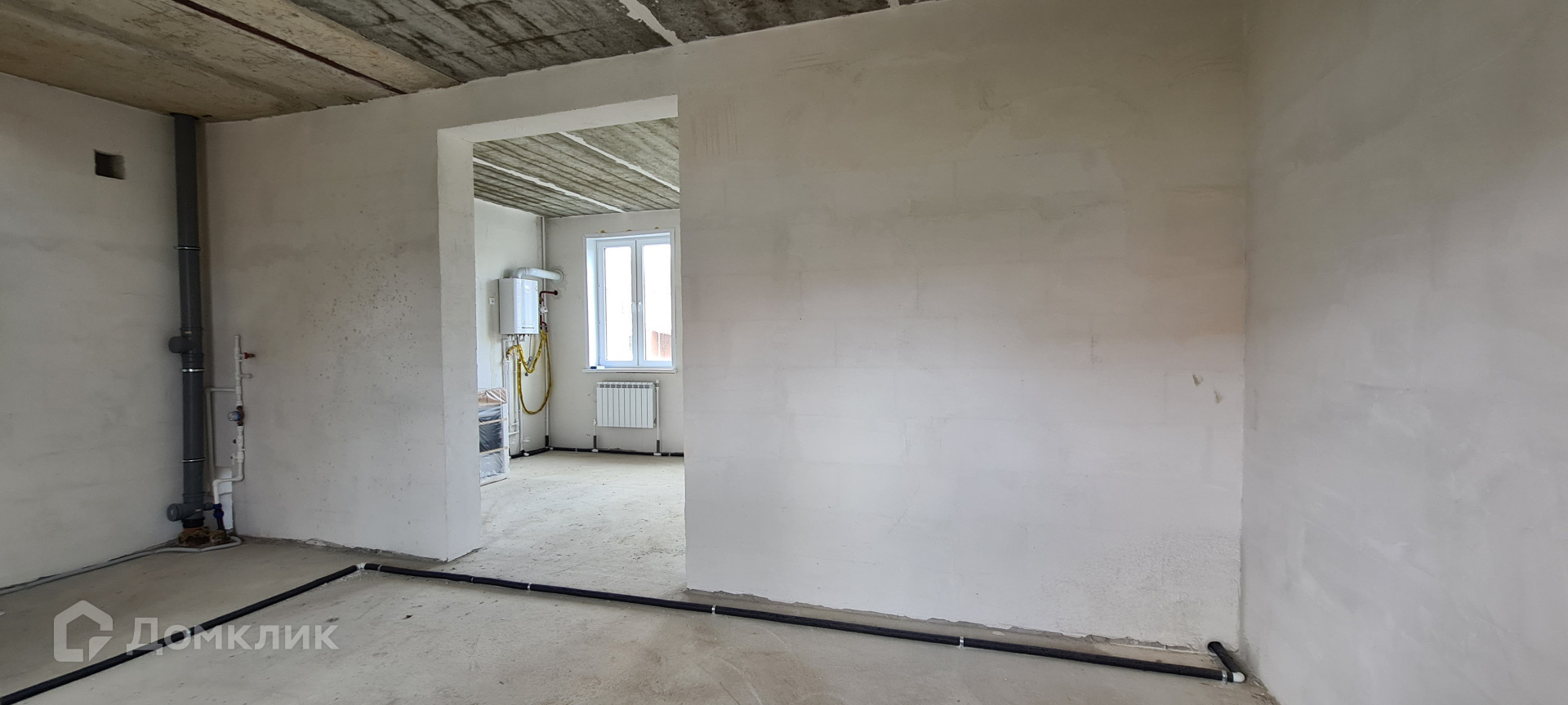 Дом сдан в эксплуатацию, подведены в дом все коммуникации, стены отштукатурены, установлен двухконтурный котел.