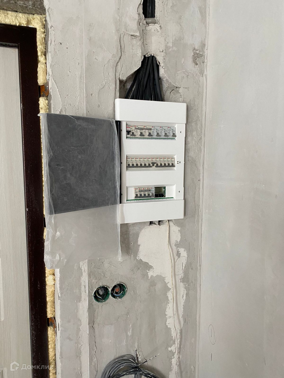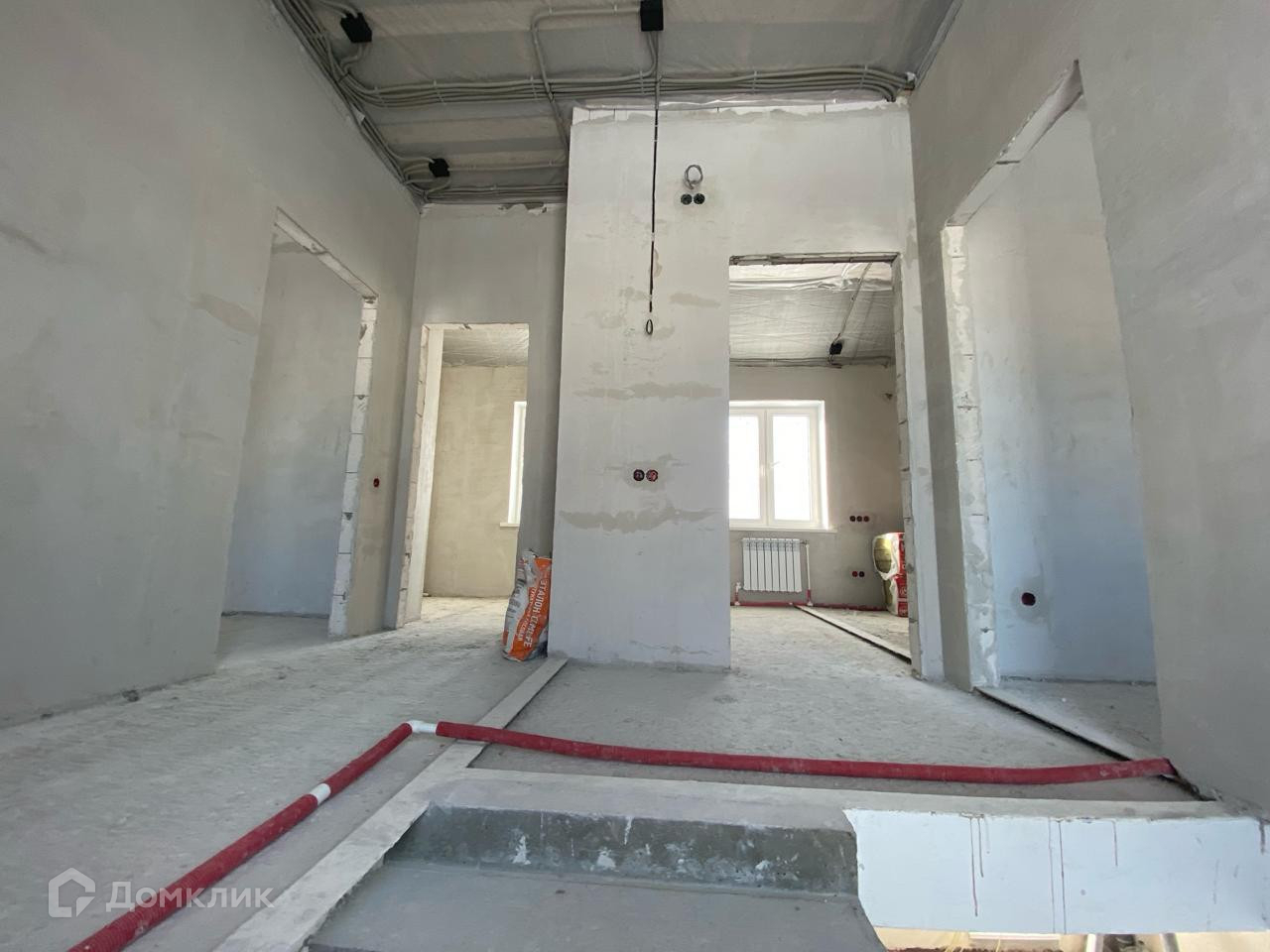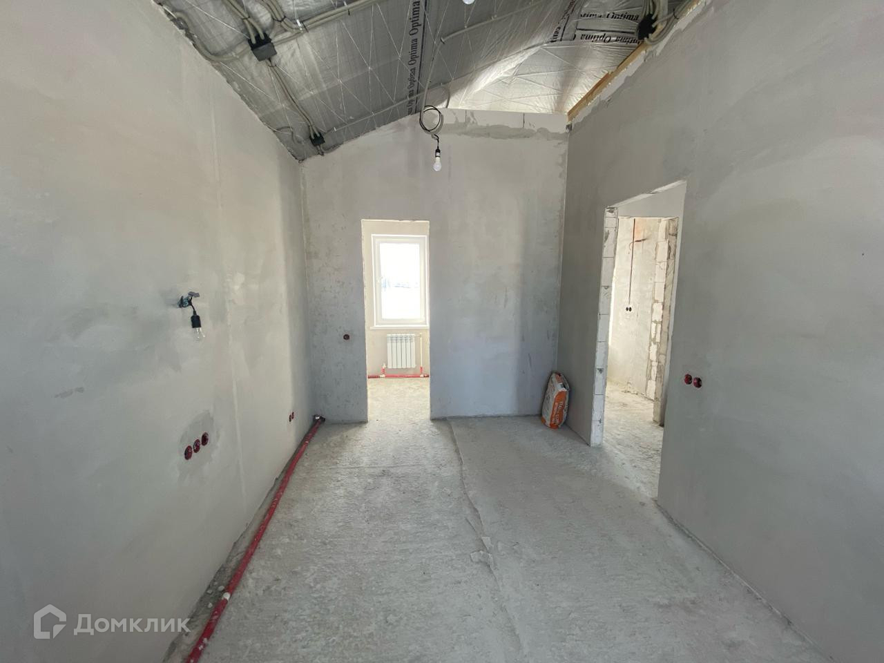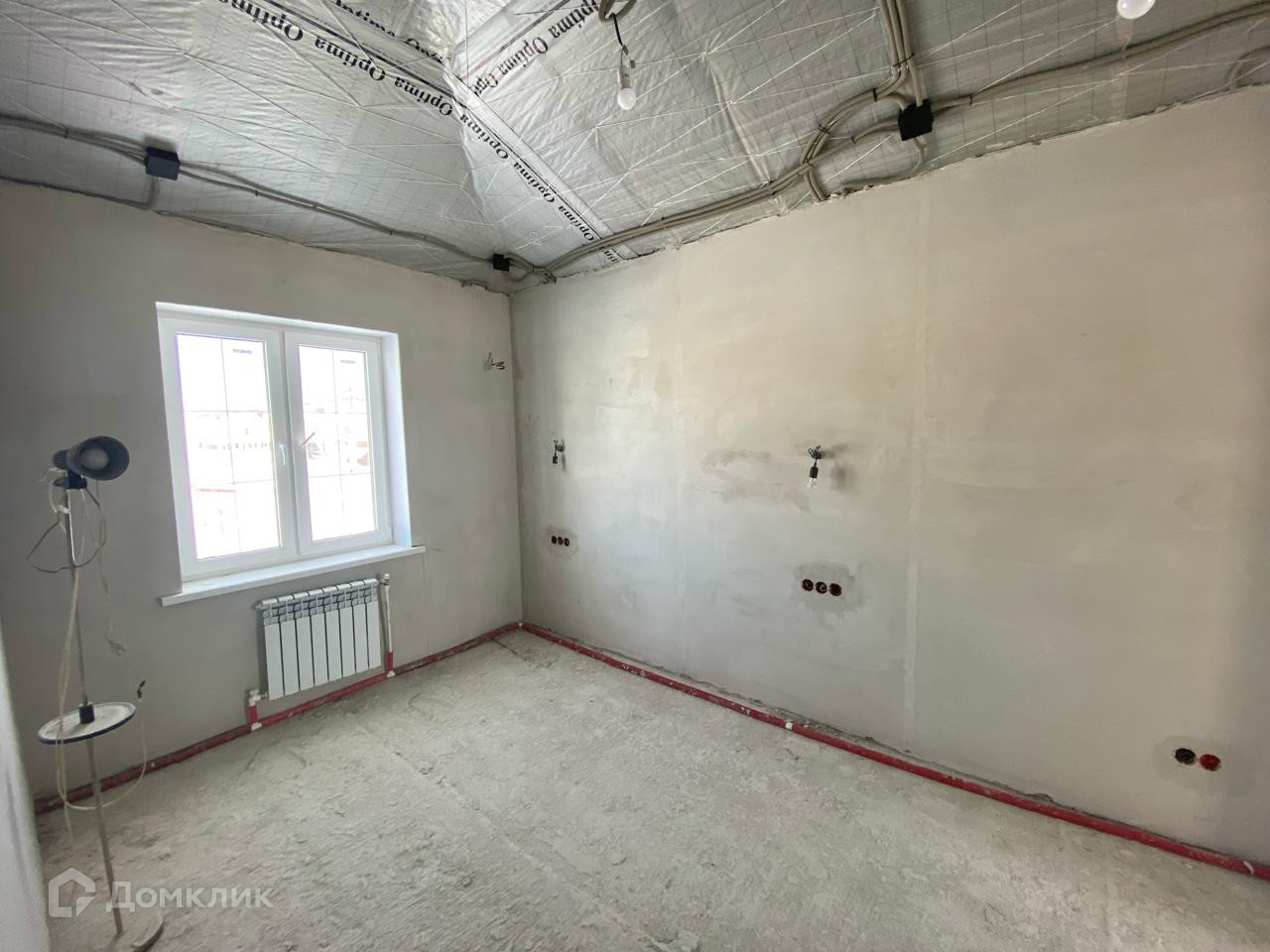 В доме частично выполнена черновая  отделка.  Стены отштукатурены.. Установлена лестница. Сделана разводка электричества. Возведены межкомнатные перегородки.