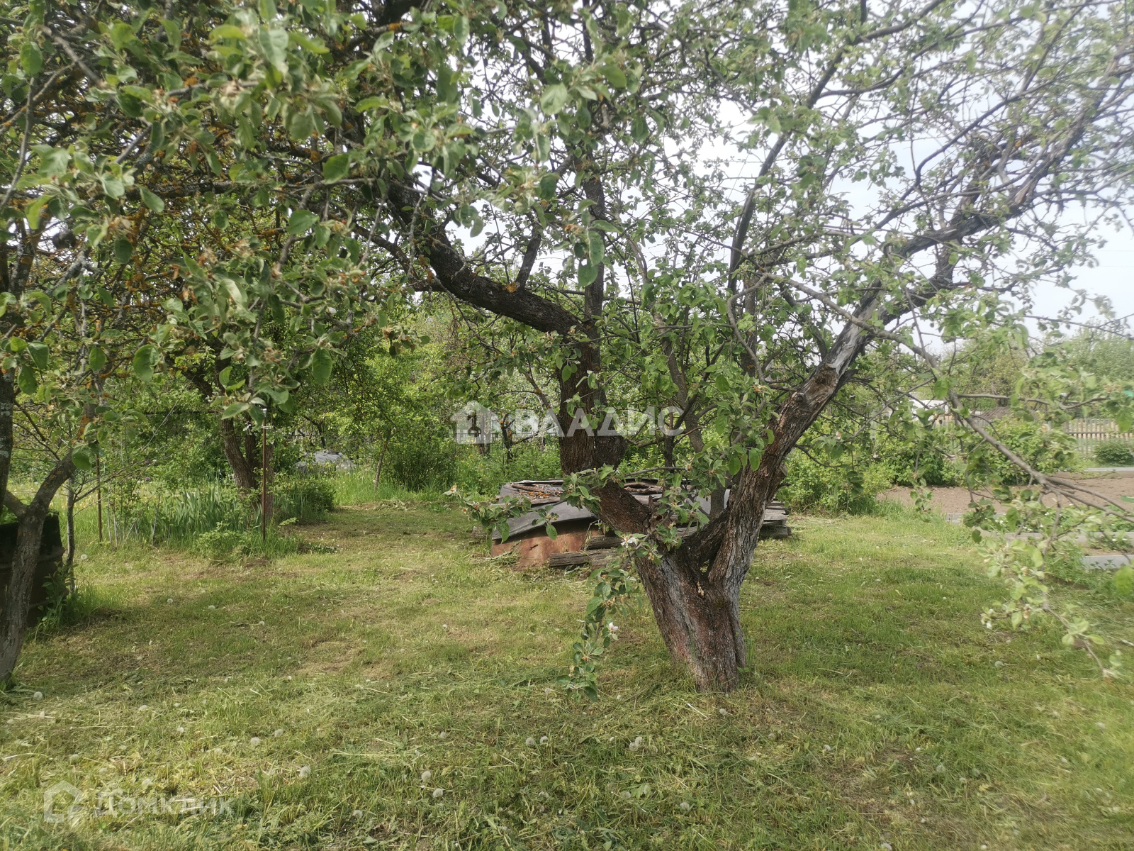 Много плодово-ягодных деревьев и кустарников (яблони, груша, вишня, сливы, крыжовник, малина).