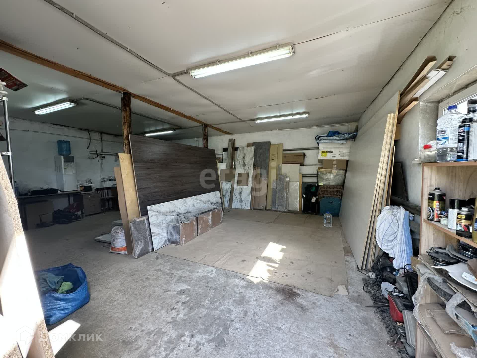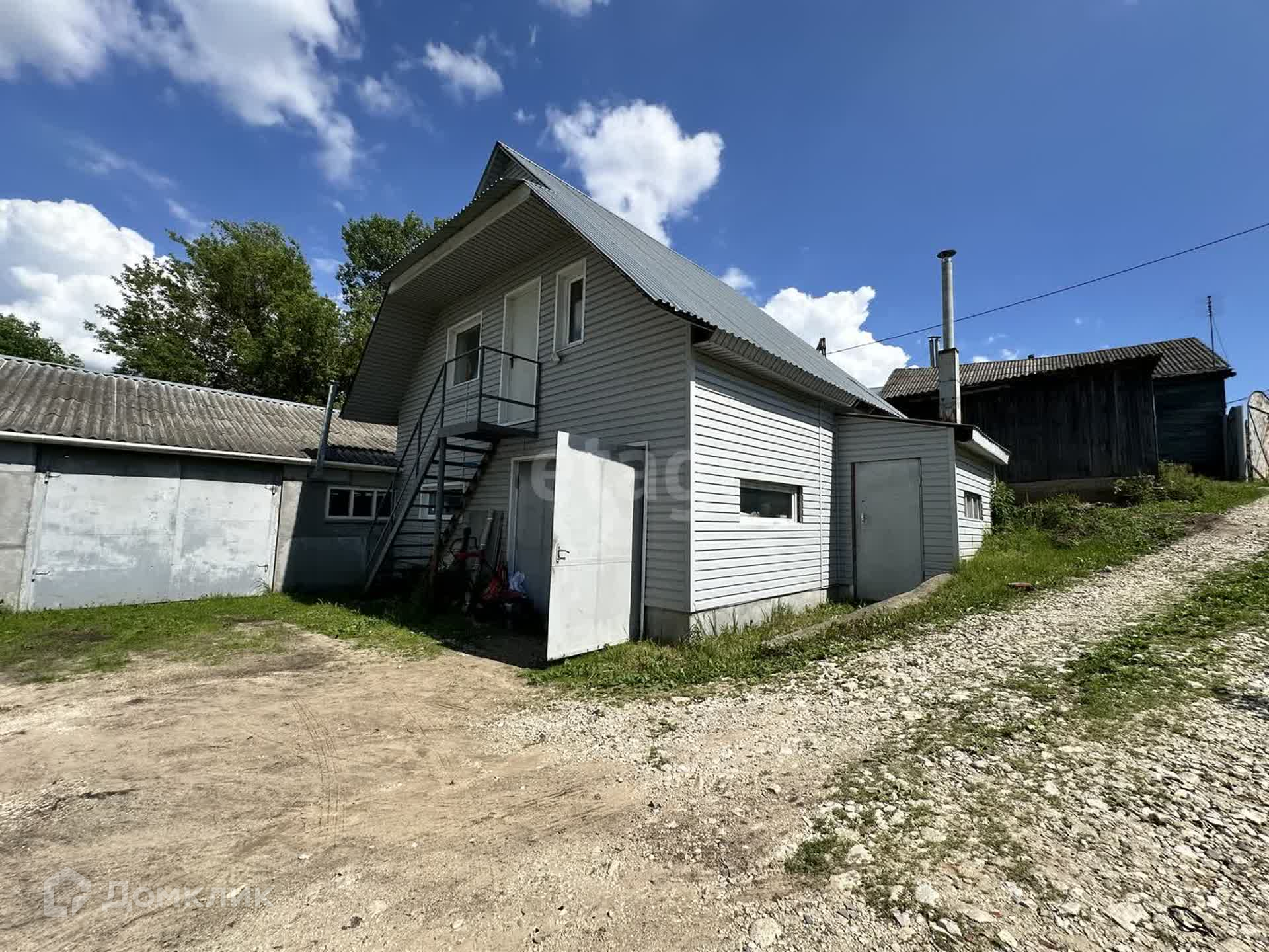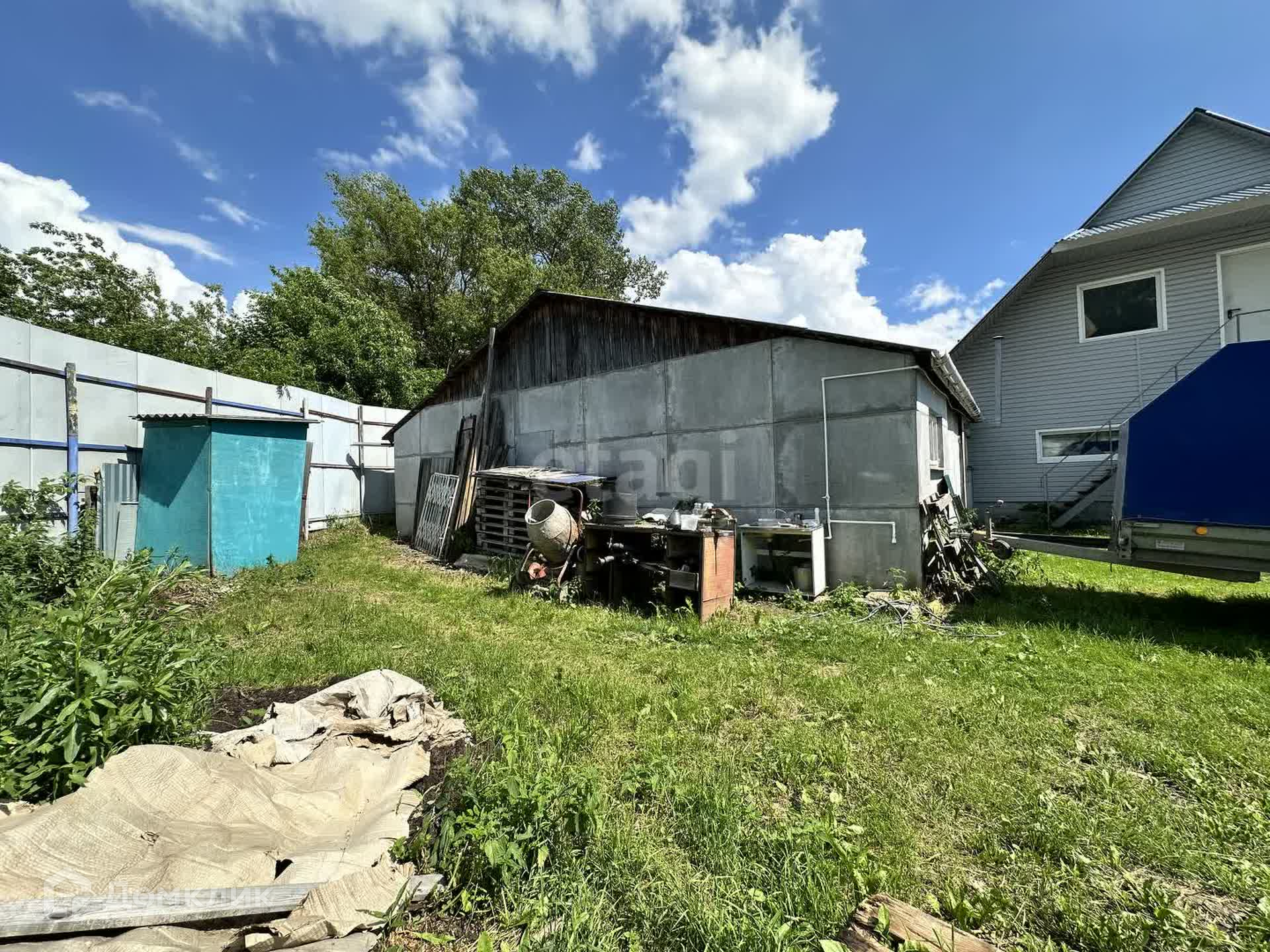 На участке есть дом под снос, гараж 110 кв.м., двухэтажное нежилое здание общей площадью 100 кв.м. свободного назначения, первый этаж используется  как мастерская, второй этаж под офисное помещение.