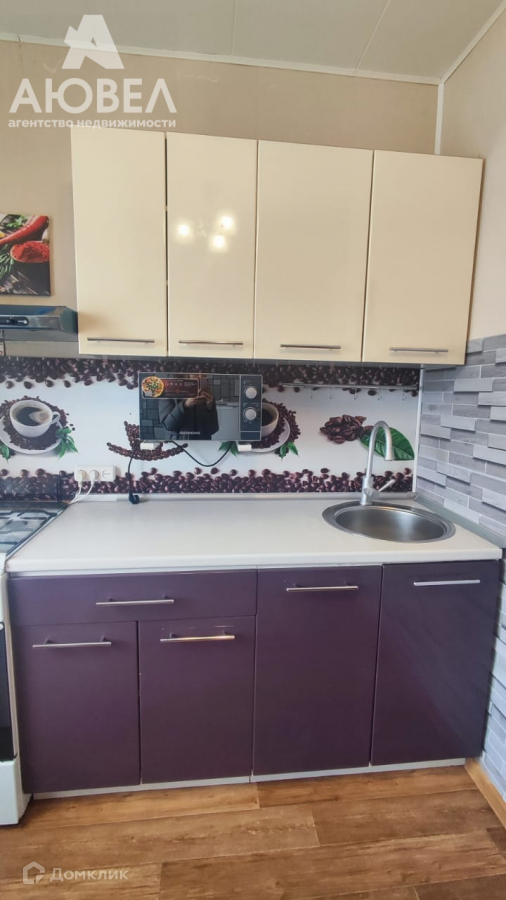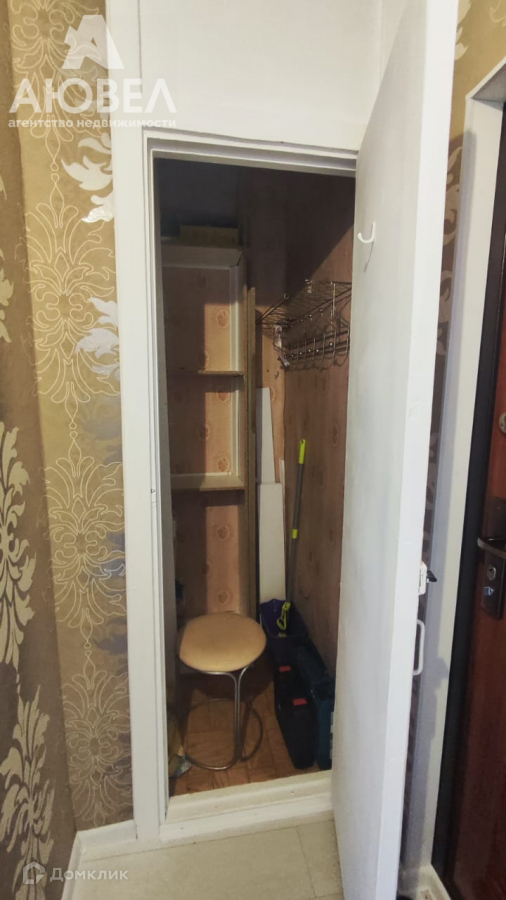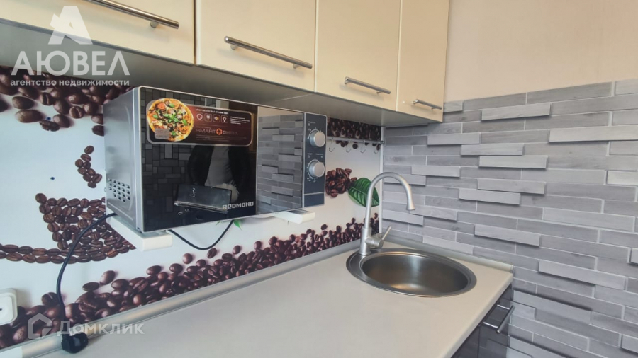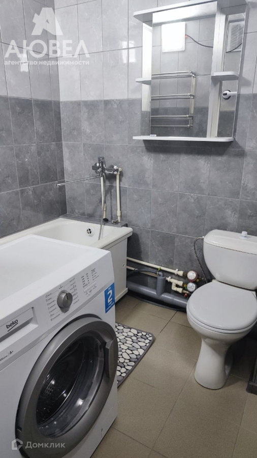 В квартире есть мебель и техника для комфортного проживания - диван, шкаф, холодильник, стиральная машина, микроволновка.