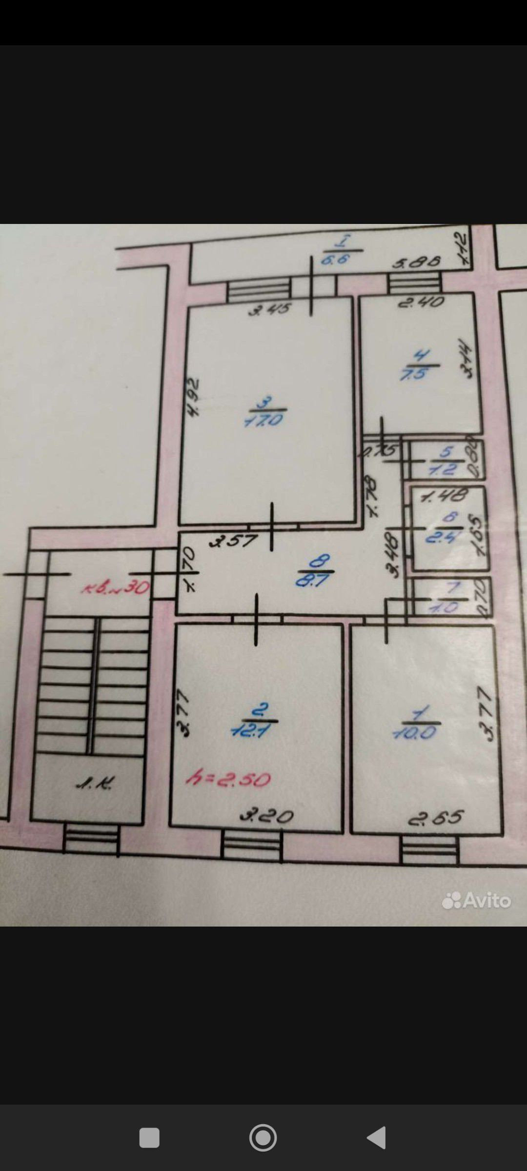 продам трёхкомнатную квартиру, общая площадь 63,2 КВ.м.
