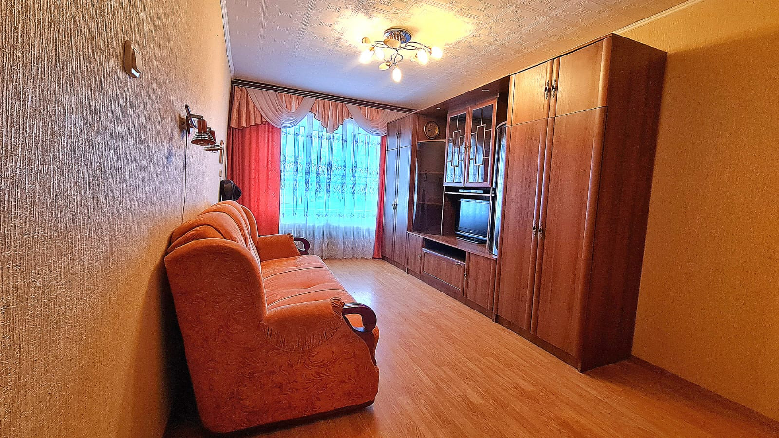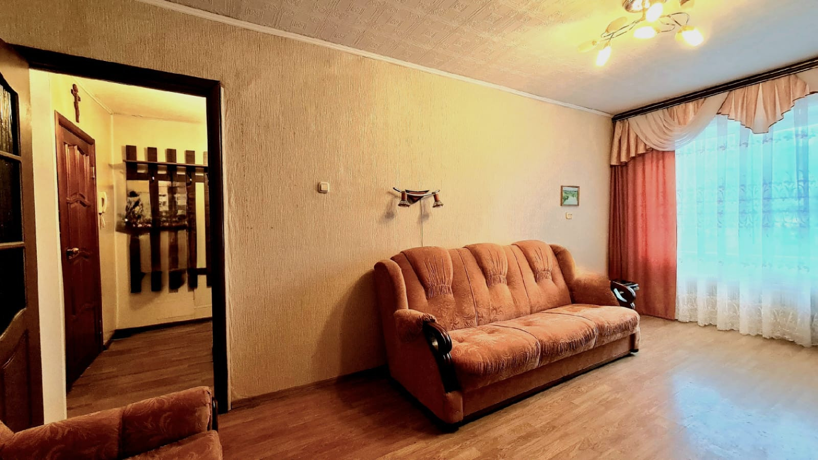На полу линолеум и ламинат.