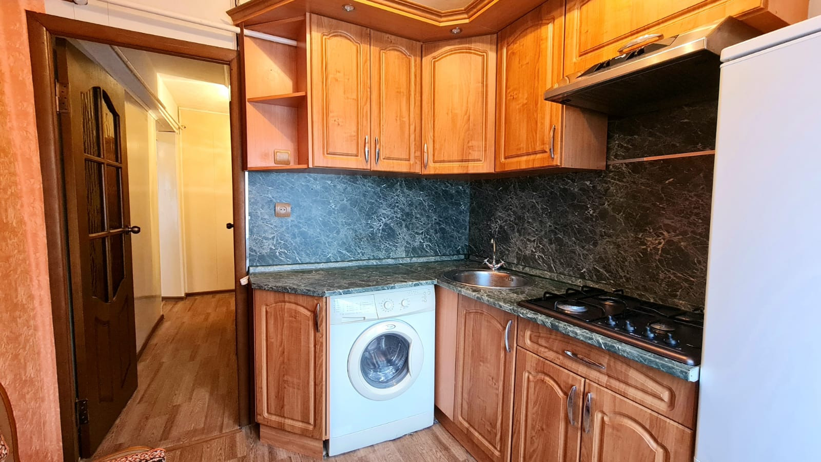 В квартире остаётся кухонный гарнитур.