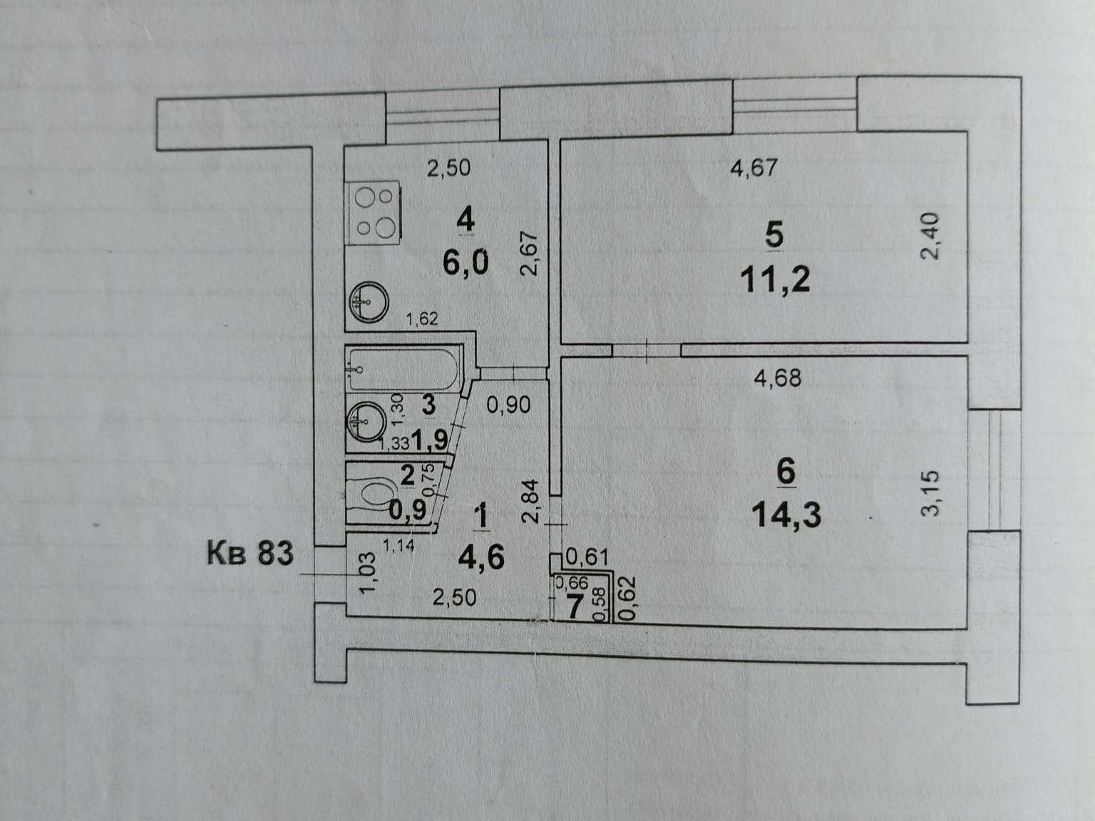 Общая площадь 39.3 м2