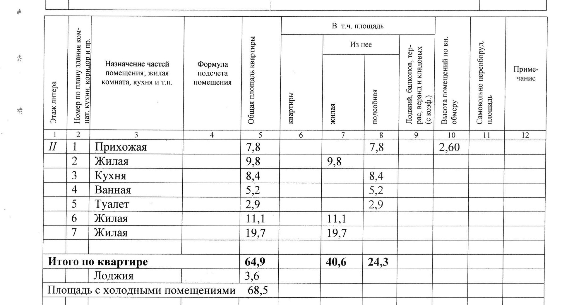 Высота потолков 2.6 м