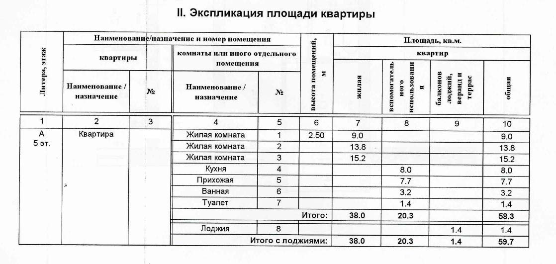 Общая площадь 58.3 м2