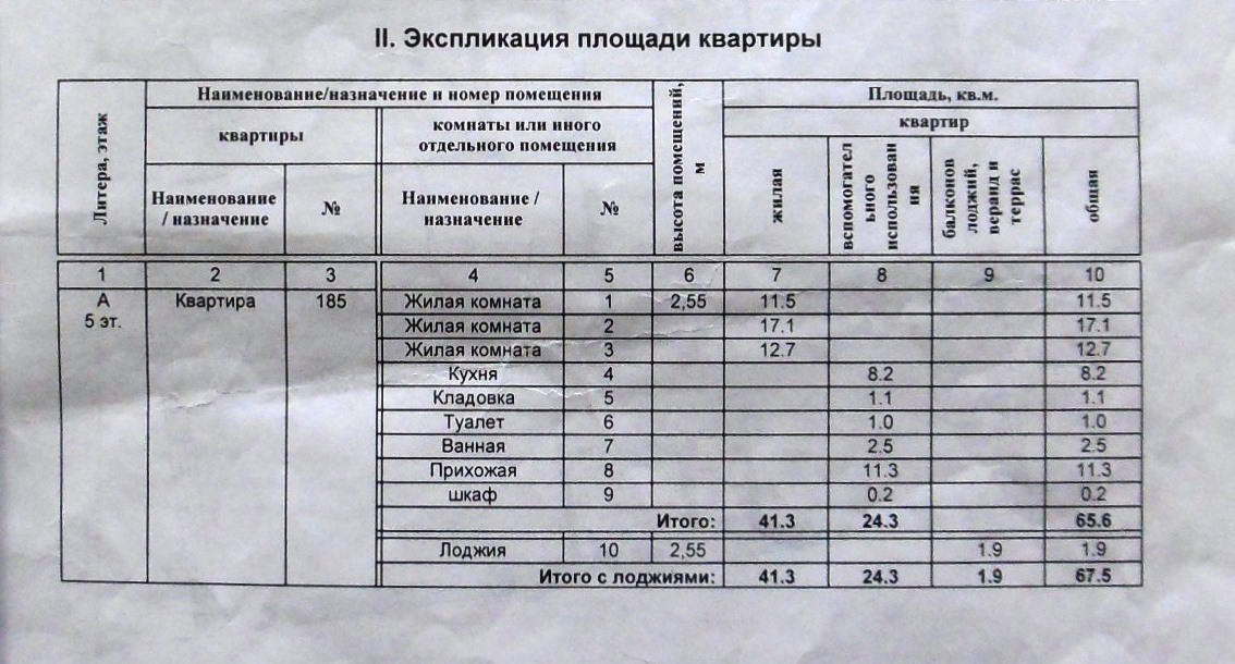 Общая площадь 65.6 м2