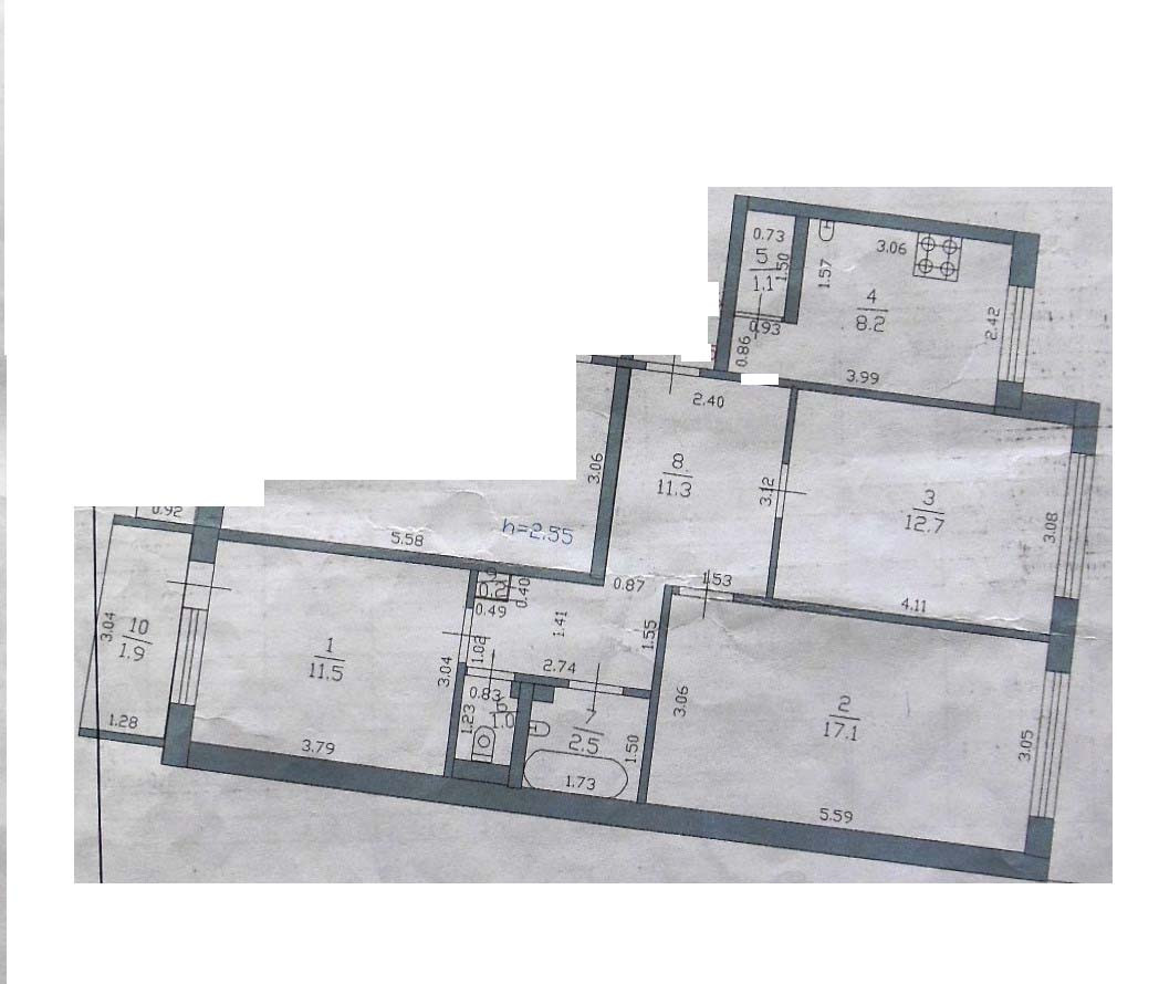 Высота потолков 2.5 м