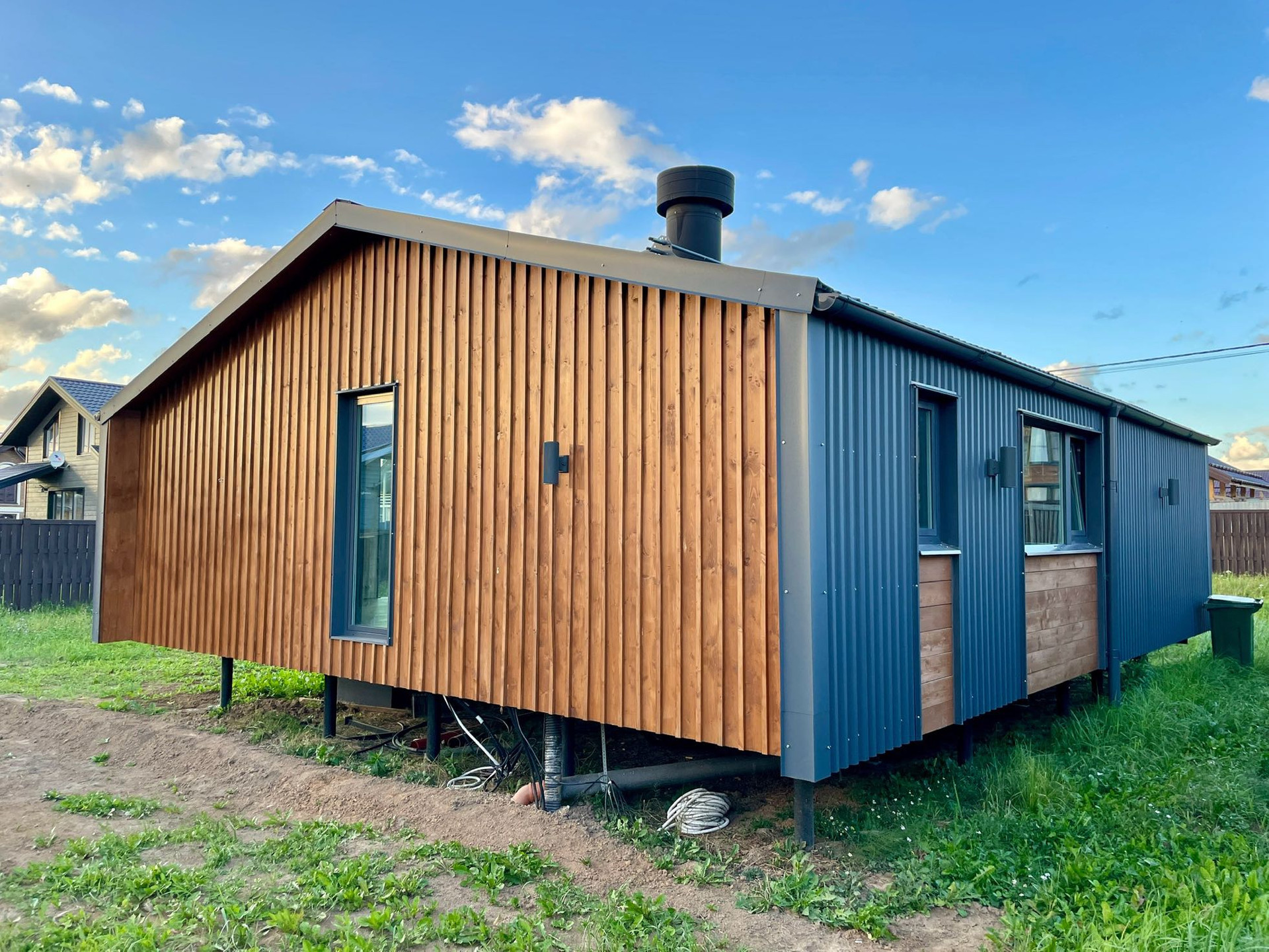 -Кровля: отделана профилированным листом Grand Line - материал имеет благородную текстуру поверхности, с повышенной устойчивостью к любым погодным и механическим воздействиям, поглощает солнечные лучи и снижает тепловую нагрузку здания, герметичен, долговечен.