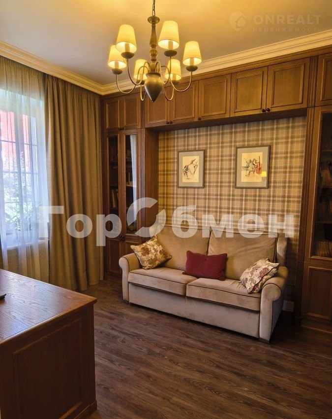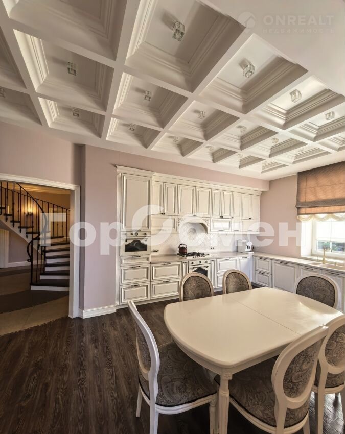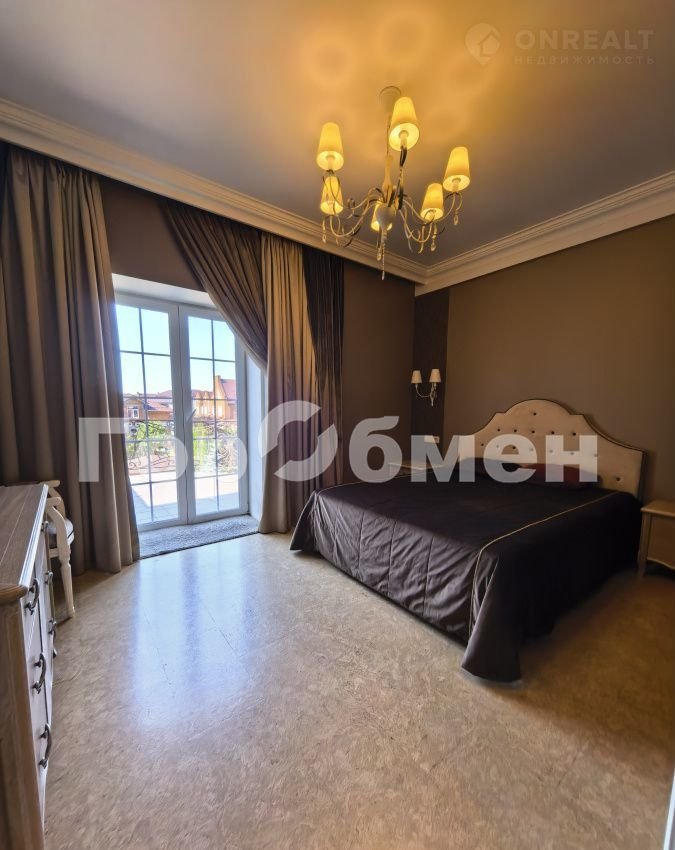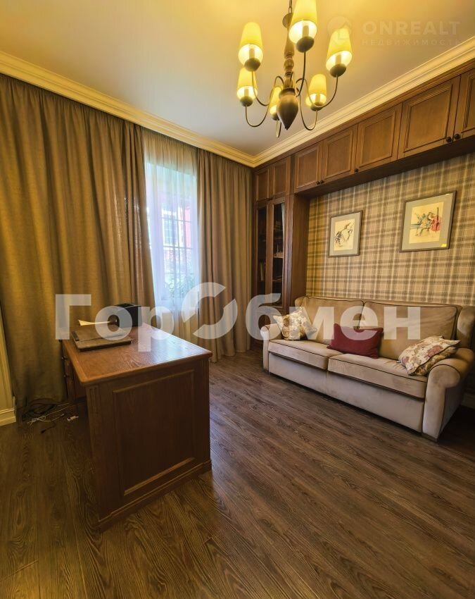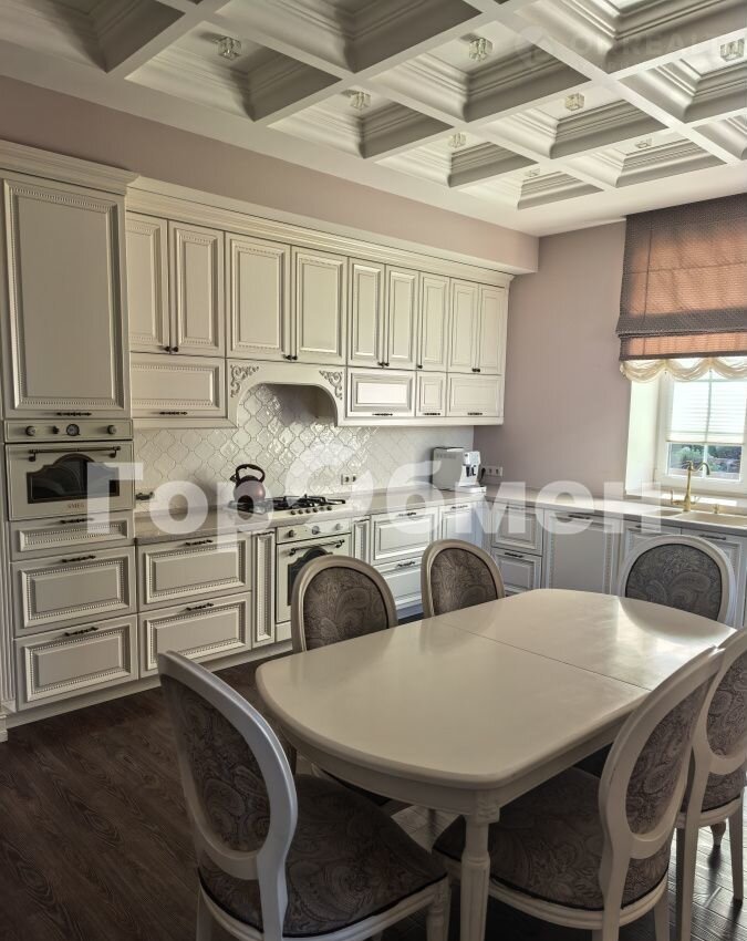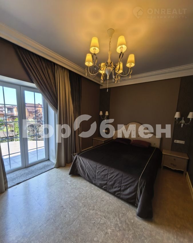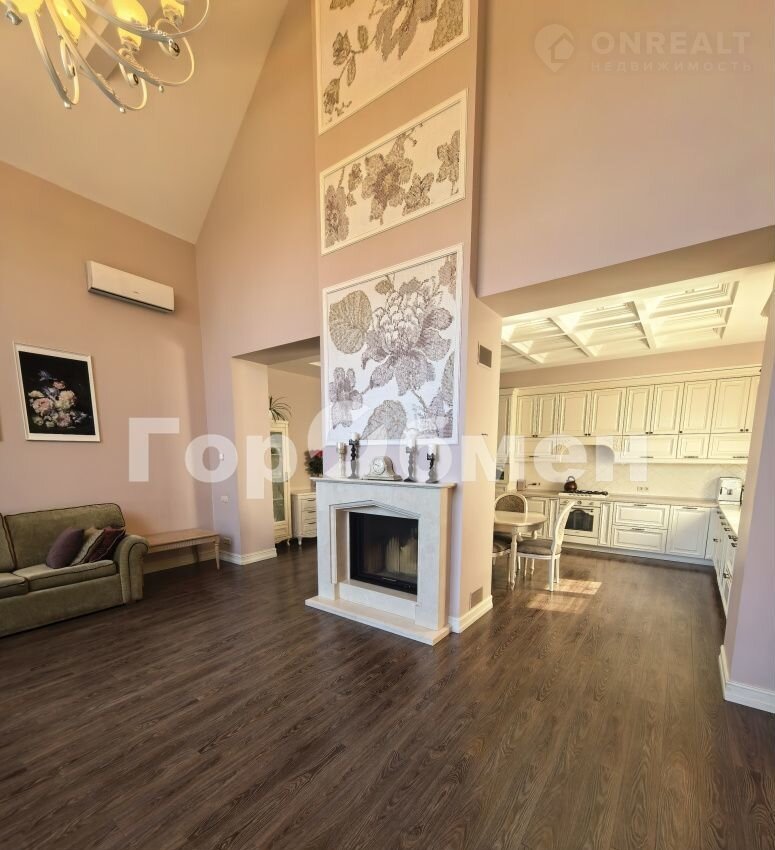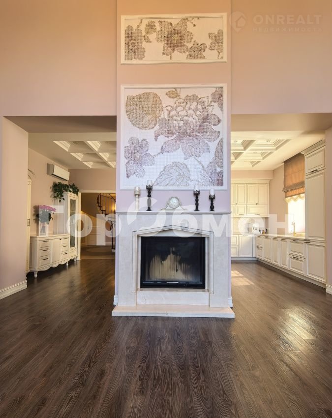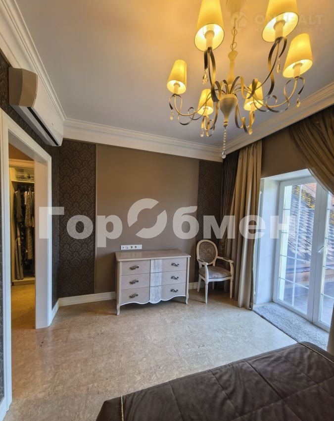 В доме 6 спален, 3 санузла, кабинет, кухня-гостиная со вторым светом, панорамным окном, дровяным камином( над камином итальянское мозаичное панно), выход на террасу. В прихожей большая гардеробная, отдельно постирочная комната, кладовка, котельная ( газовый котел 60 кВт, вода бойлер 300 литров).