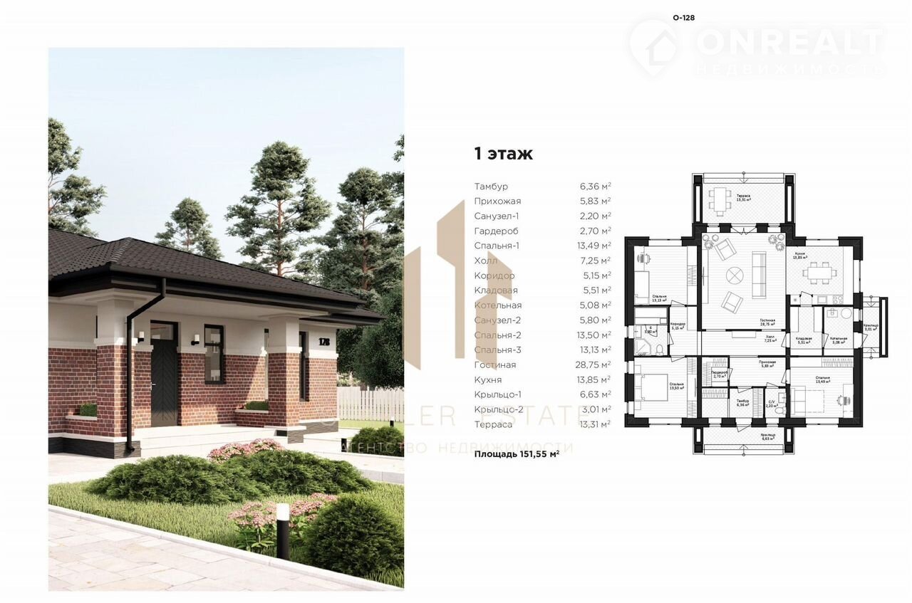 1-этажный коттедж, 151 м2, на продажу КП Ели