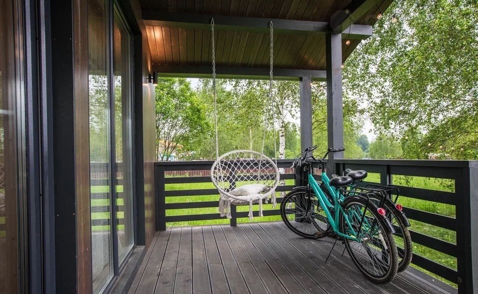 Завершить насыщенный день можно за увлекательной беседой, расположившись на крытой террасе с уютными креслами, навесным гамаком, столиком и приятной подсветкой.