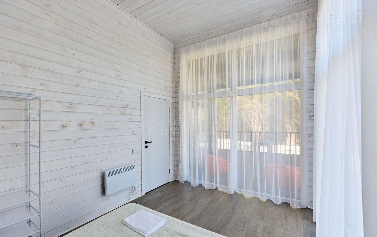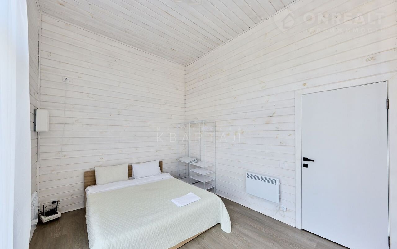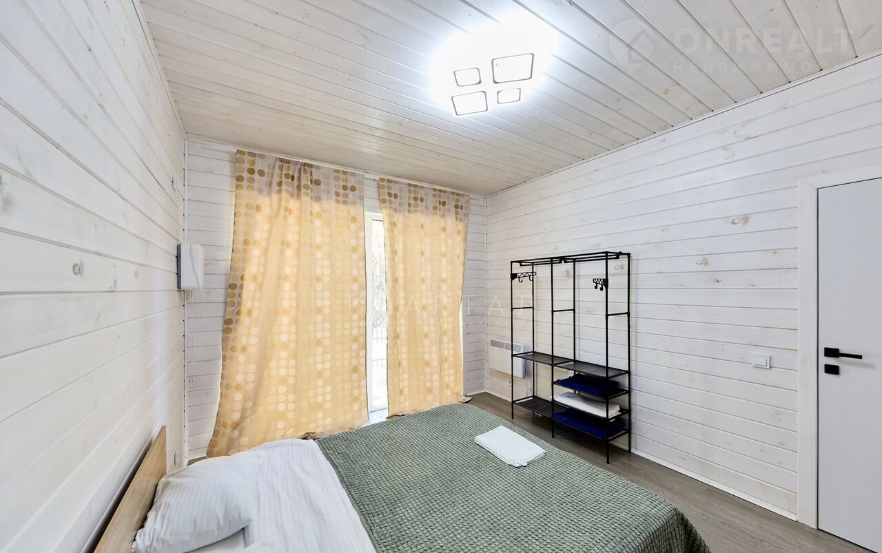 Планировка: две спальни, кухня-гостиная, санузел с душевой кабиной и просторной финской парной, выход на открытую веранду. Участок ровный, забор, барбекю-зона, место под парковку.