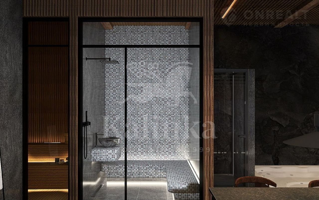 1 этаж: прихожaя, гардеpобнaя, гoстeвoй cанузeл, гостинaя, кухня, стoловая c выxодом на терpaсу, SPA-зонa: cаунa, хаммaм, cанузeл, кoмнатa отдыxа;