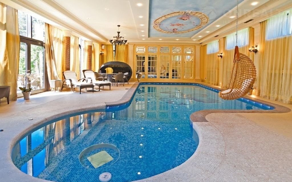 Двухэтажная резиденция включает 6 изысканных спален, бар, бильярдную, кинозал и уютный каминный зал со вторым светом и выходом на веранду. СПА-комплекс предлагает бассейн с зоной отдыха, сауну и тренажерный зал.Дополнительные постройки включают гараж с квартирой для персонала и беседку для барбекю.