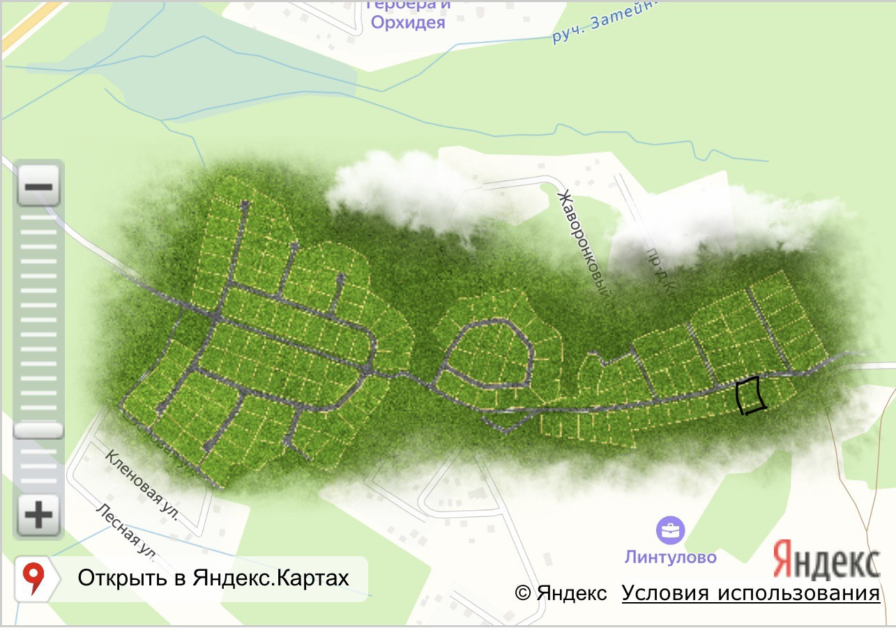 Участок расположен в КП Огоньково, в получасах езды от Санкт-Петербурга.