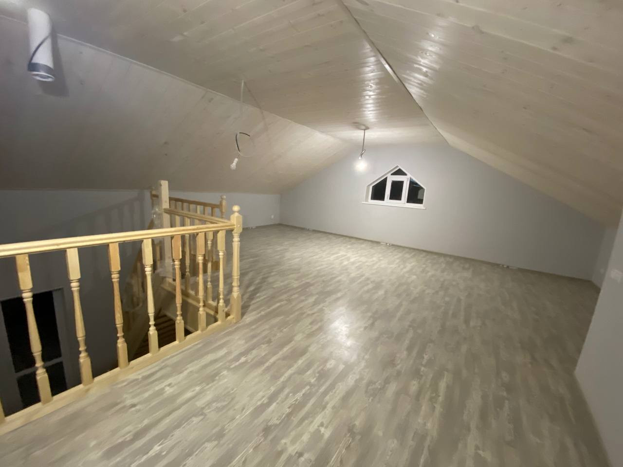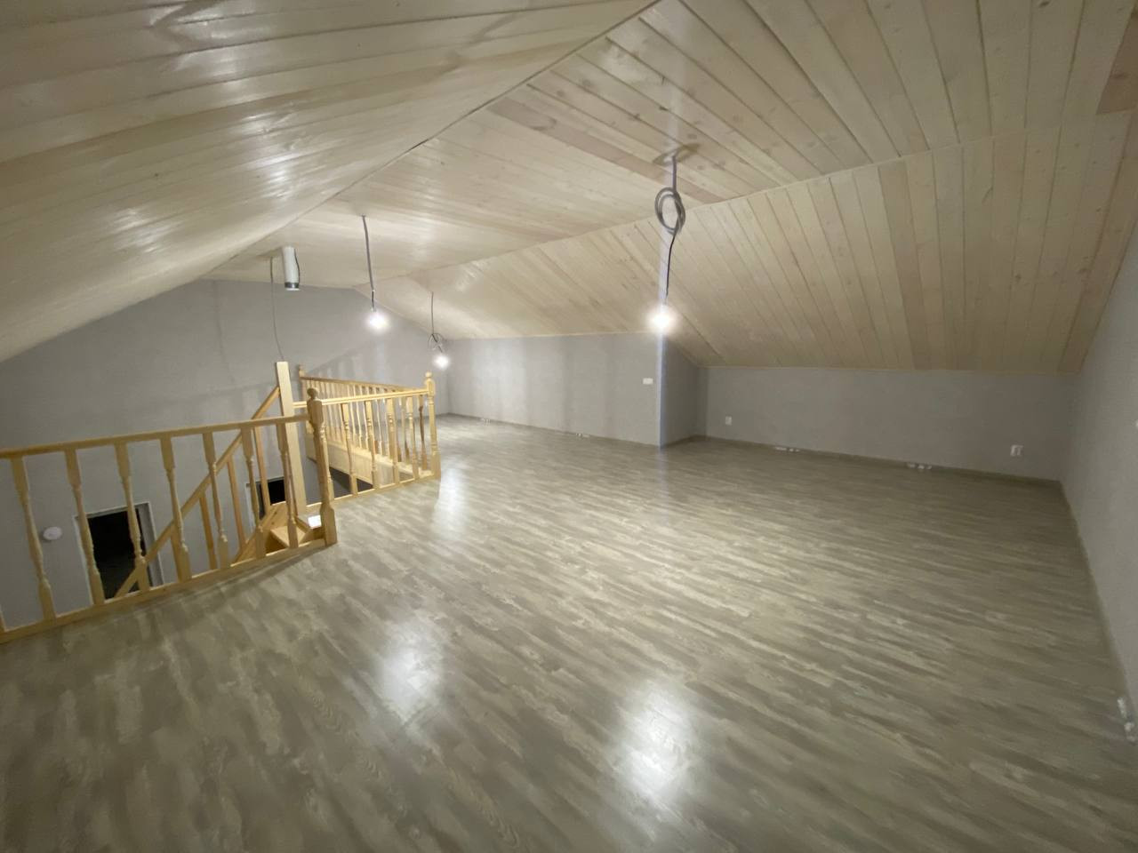 Прекрасный двухэтажный дом общей площадью 110 м2 , который станет идеальным вариантом для вашей семьи , с грезами о лестнице и собственной большой комнатой в стиле лофт наверху а так же классическими отдельными спальнями .