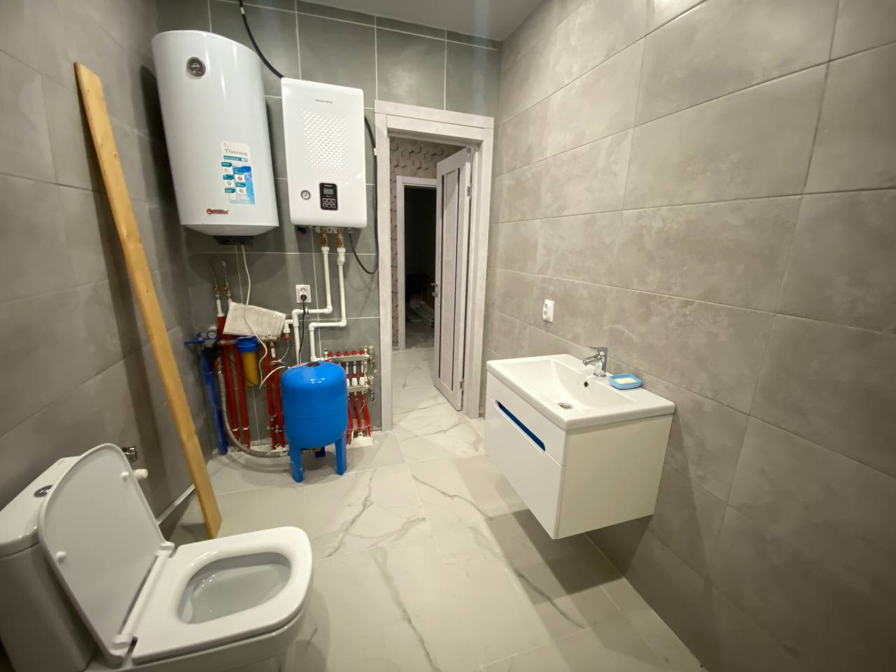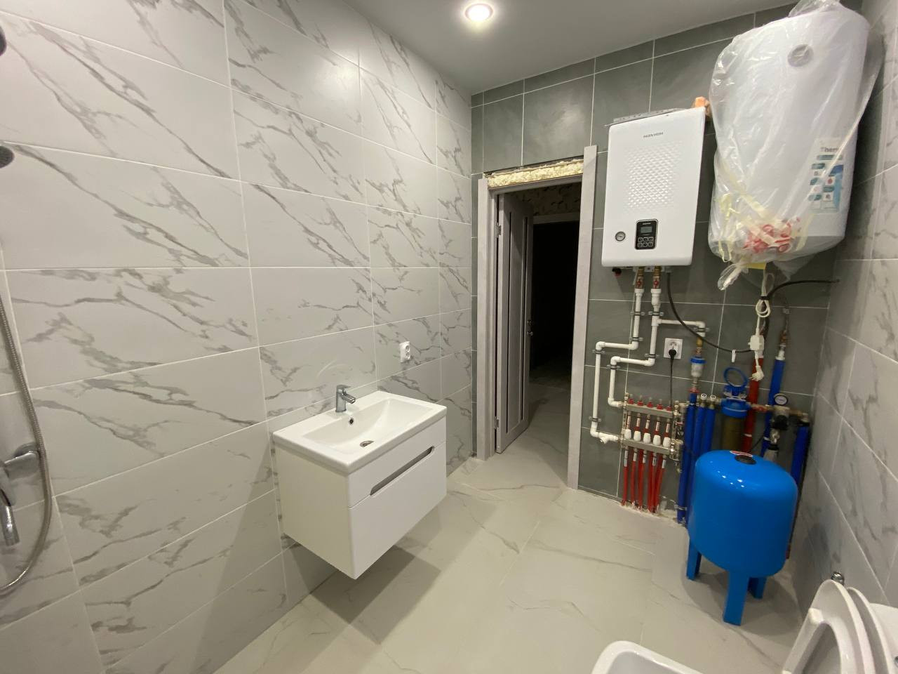 Практичный санузел отвечает всем потребностям , вмещает в себя полноценную ванную .