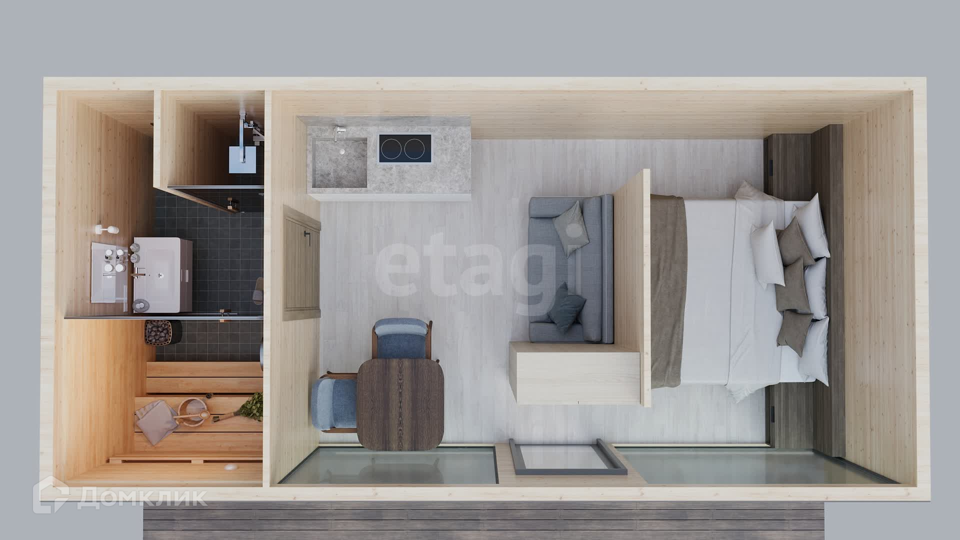Современный модуль-дом STUDIO SPACE 65.  ш*в*д 6500х3000х3000 мм.