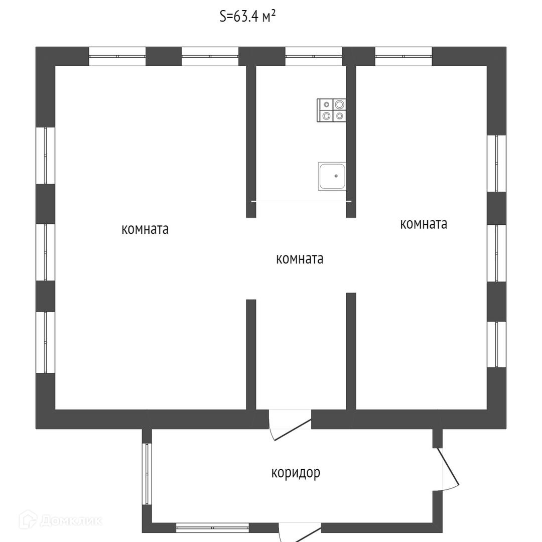 Общая площадь 63.4 м2