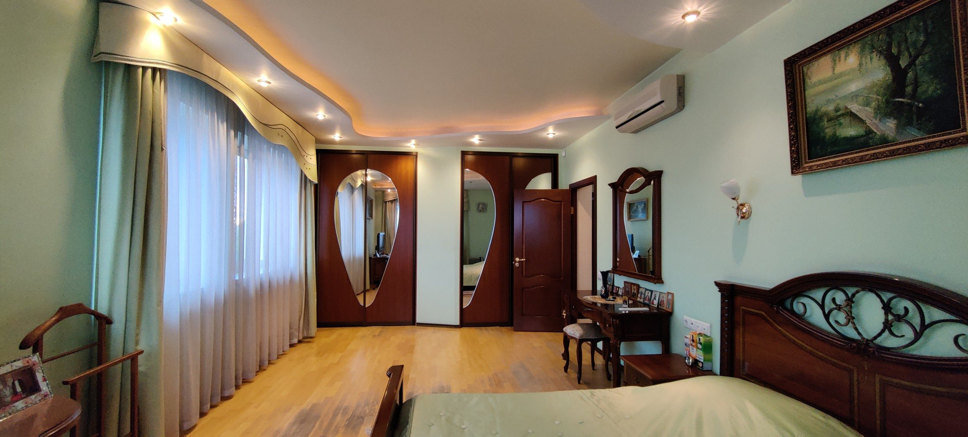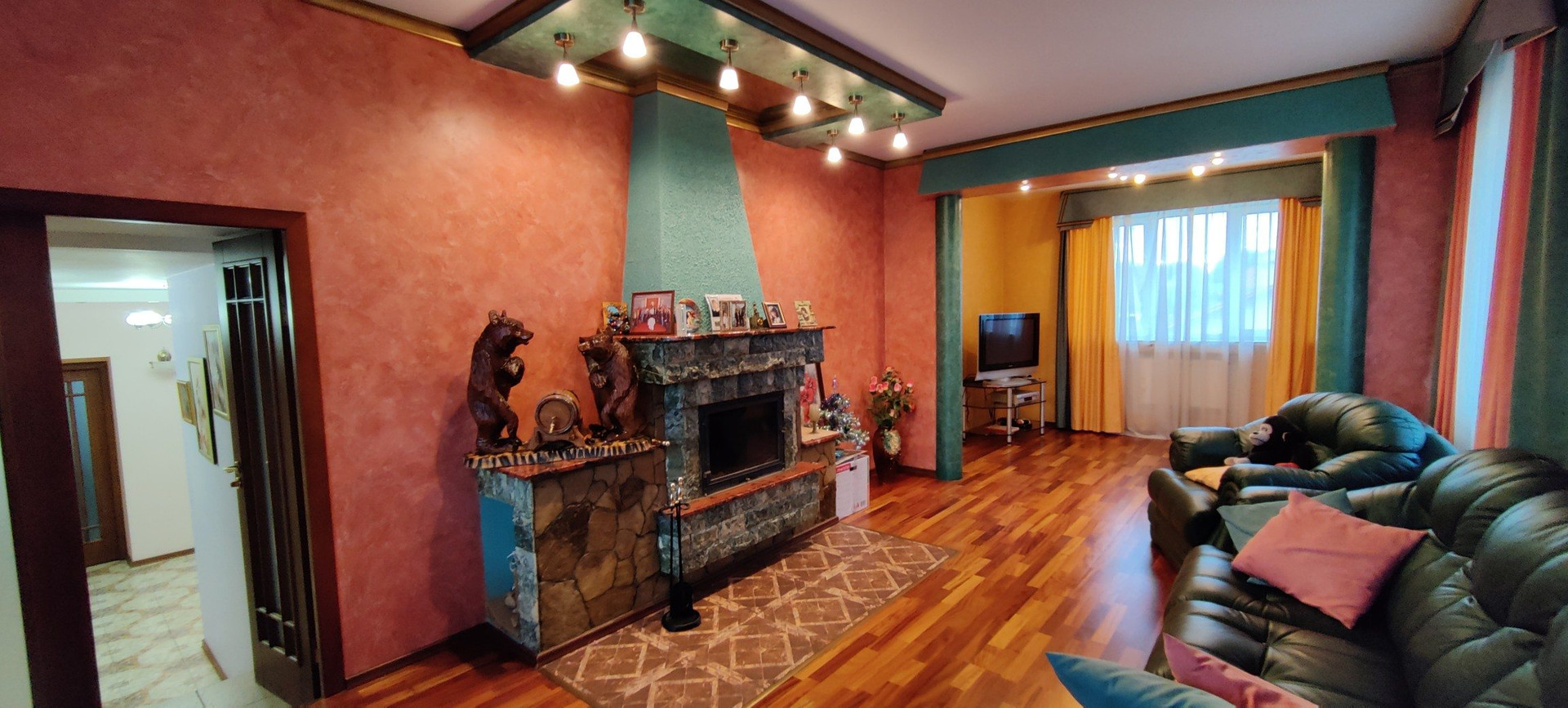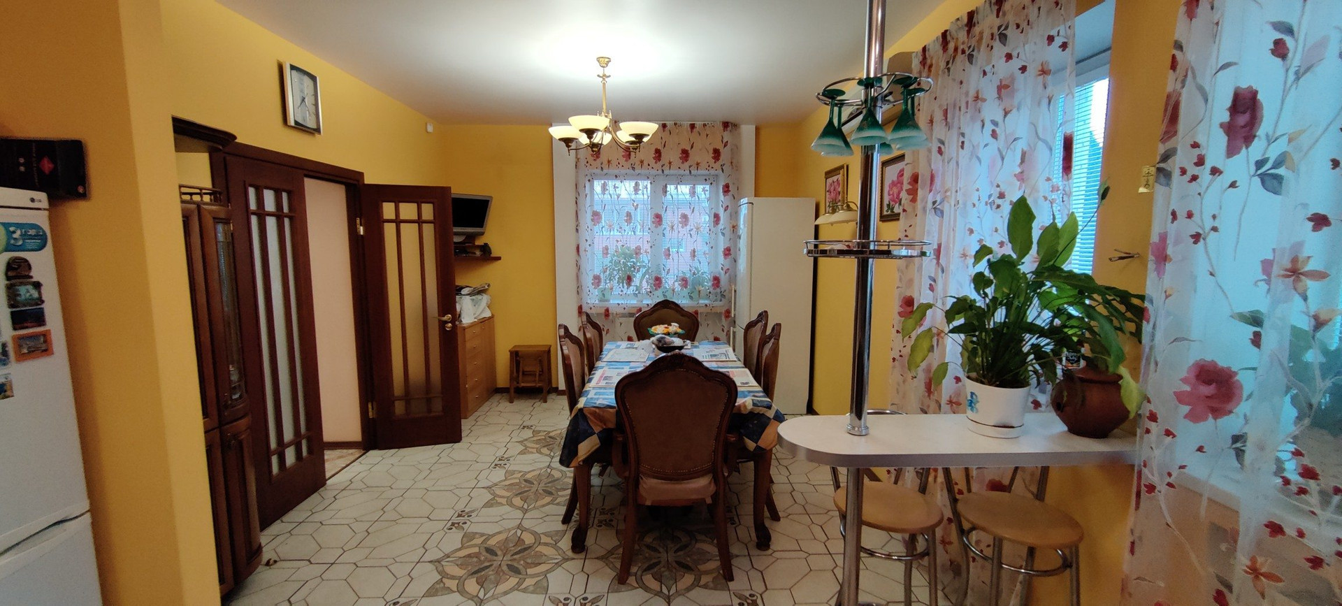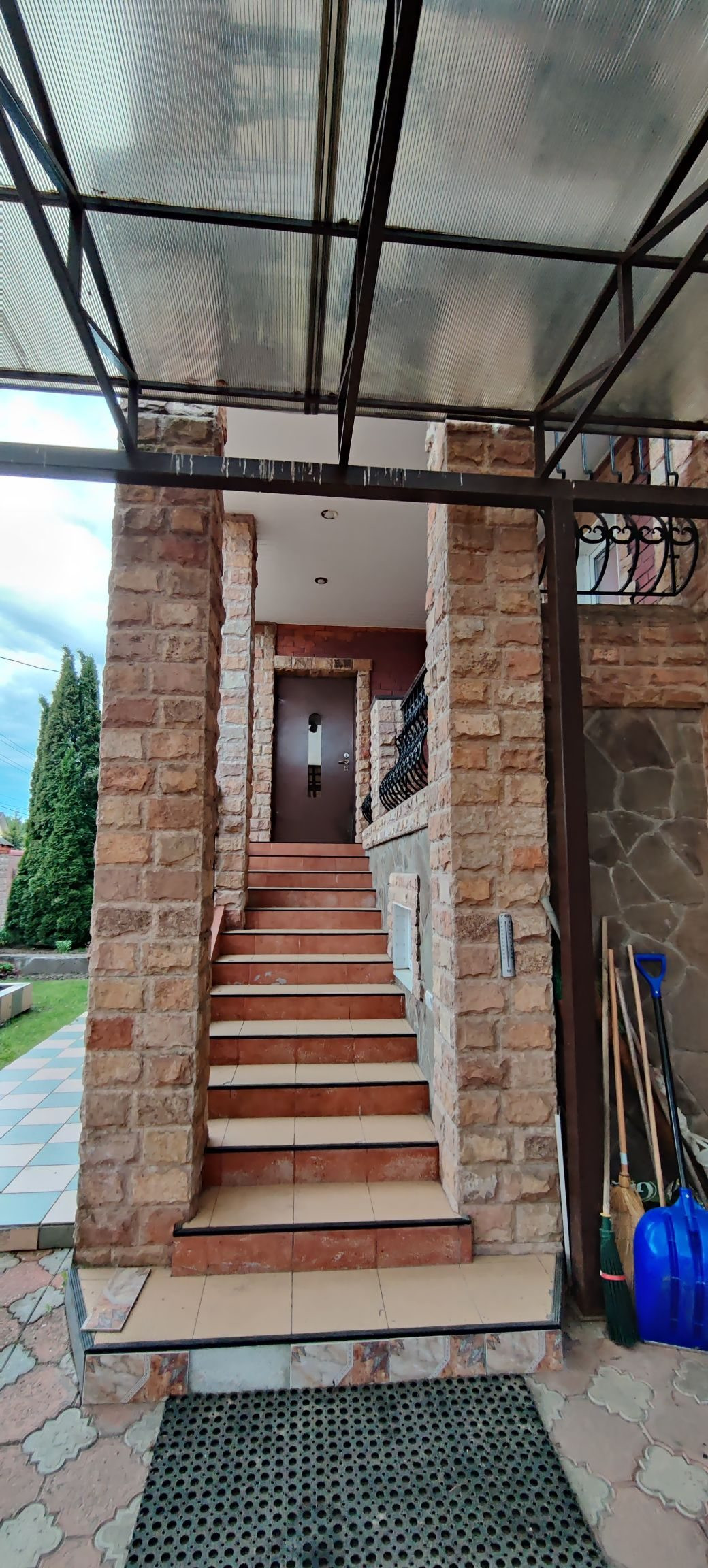 Цокольный этаж: гараж с ямой (29,6кв.м), помещение с бассейном - 24,8кв.м (плитка для отделки бассейна остаётся), сан.узел, две душевые, сауна (9,5кв.м), бойлерная - 5,8 кв.м (бойлер газовый), котельная 14,3 кв.м (установлен газовый котёл) и оттуда второй выход во двор;