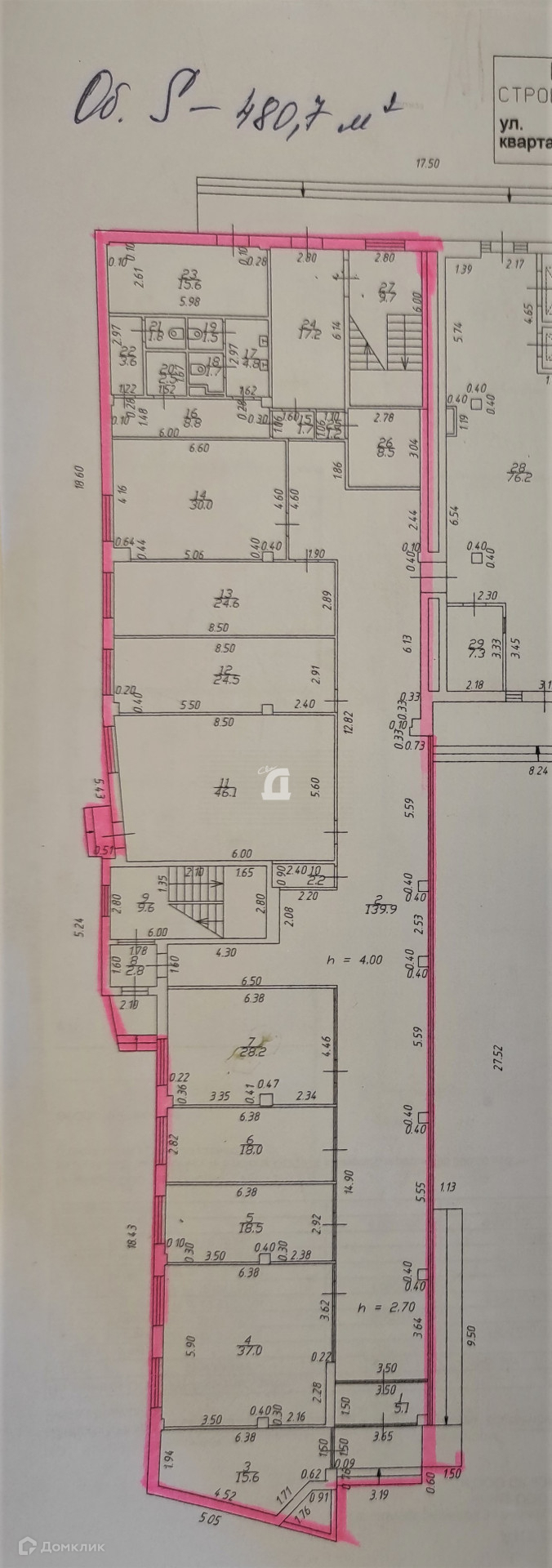 Высота потолков 2.7 м