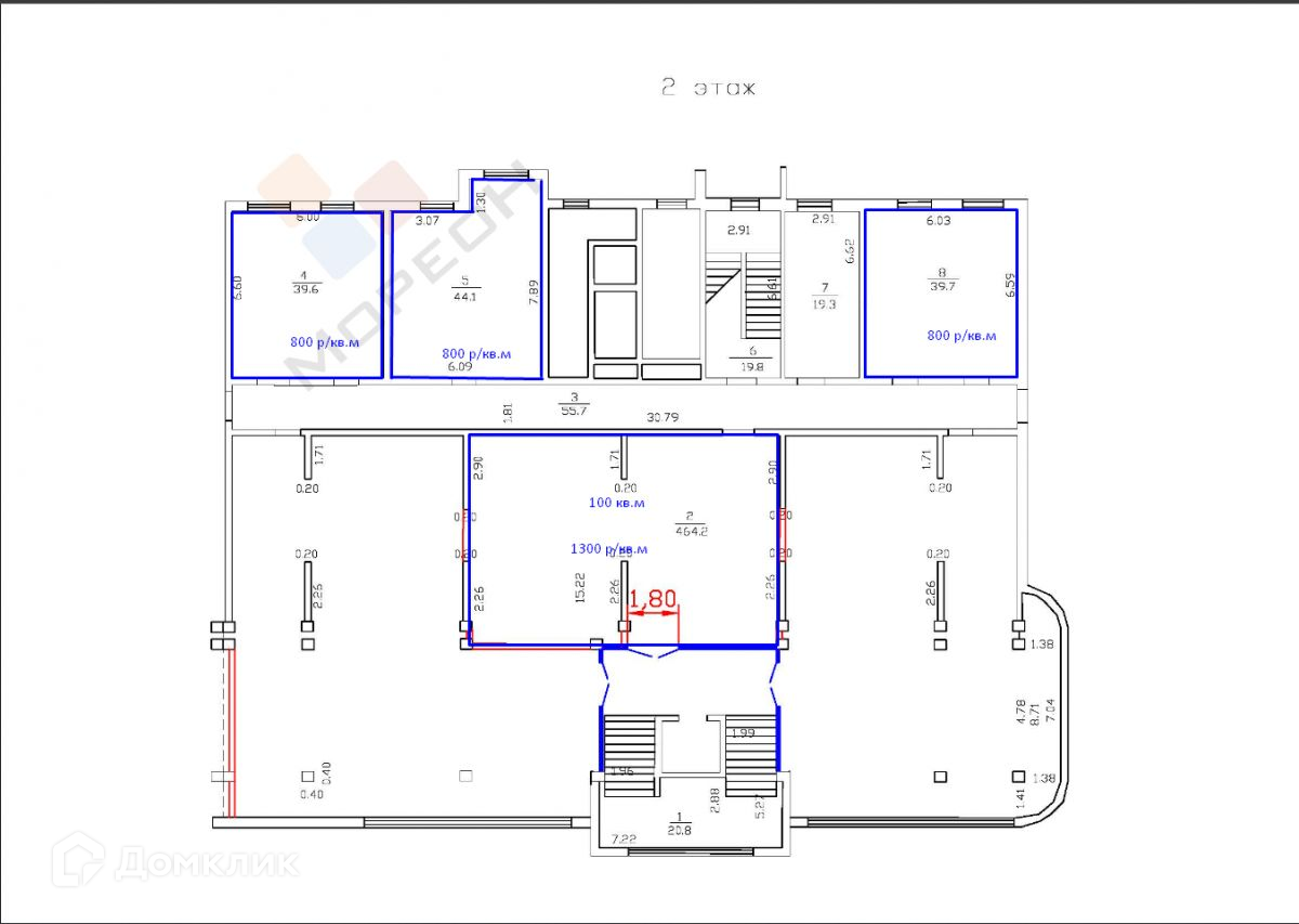 Предлагаем в аренду помещение 223.40  кв.м на 2м этаже ЖК Южный на ул. Репина. Помещение состоит из зала 100 кв.м и  трех кабинетов по 40 кв.м.