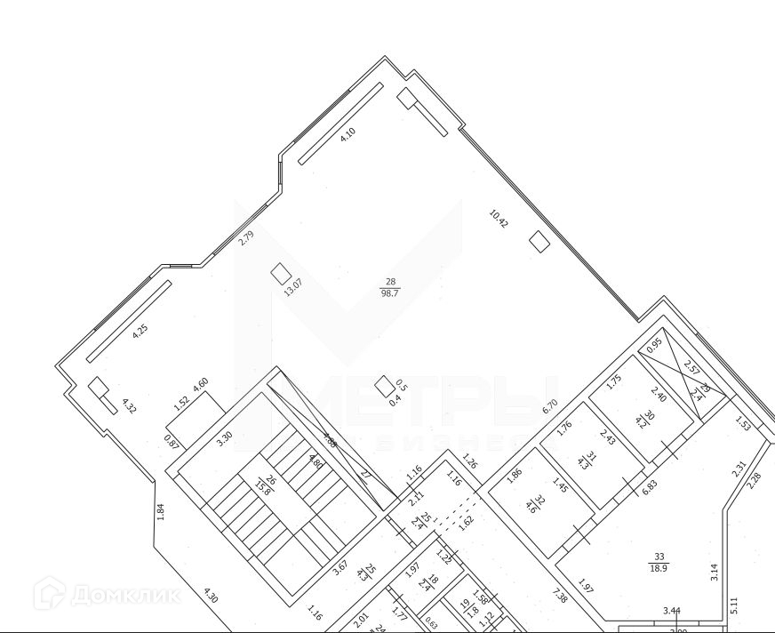 Помещение с ремонтом, планировка open spec 98,7 кв.м и собственный туалет 3,15 кв.м.