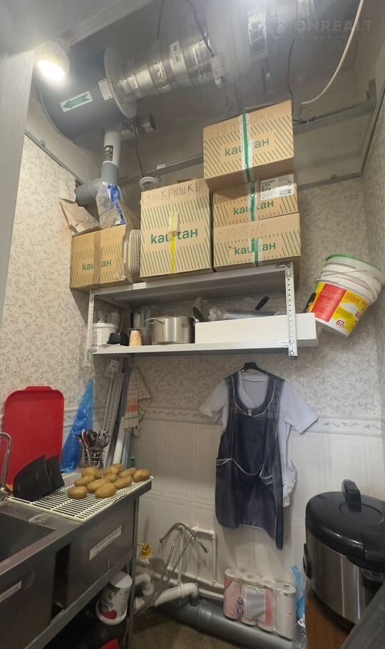 Высота потолков — 3 м, что позволяет разместить стеллажи или сделать подвесные конструкции для вывесок.