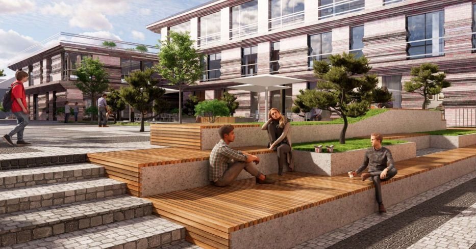 Центральная зелёная зона. Оазис зелени станет идеальным местом для прогулок и отдыха сотрудников и гостей комплекса.