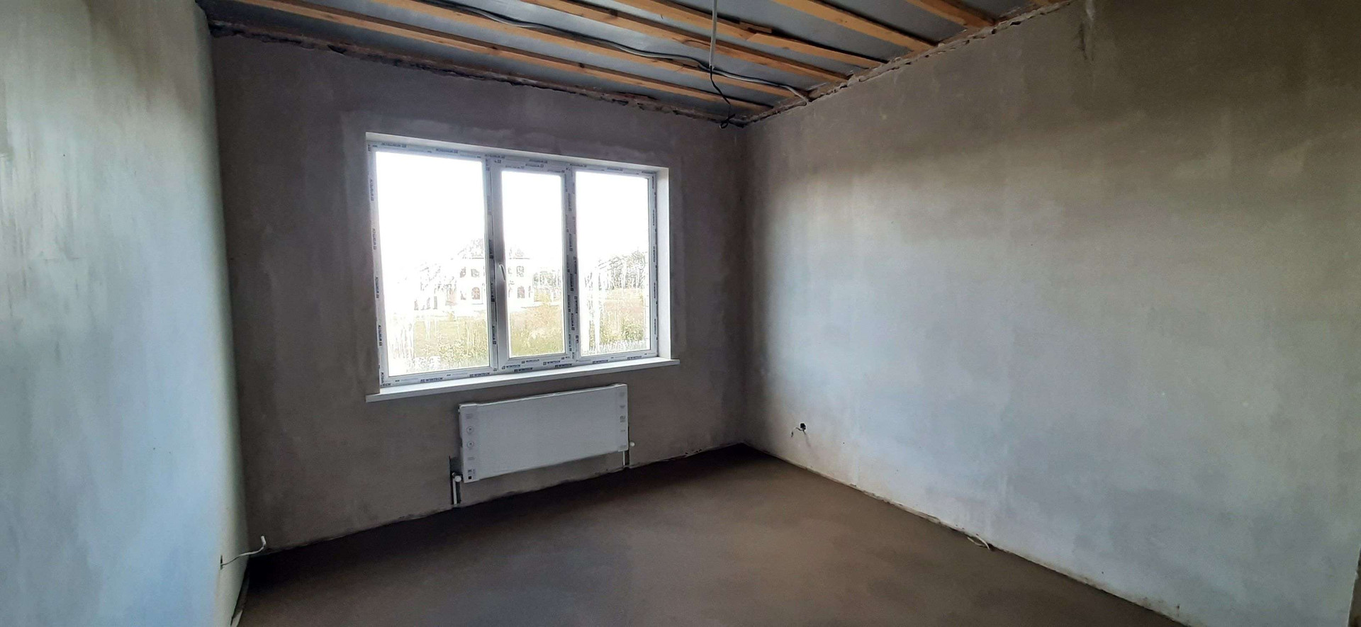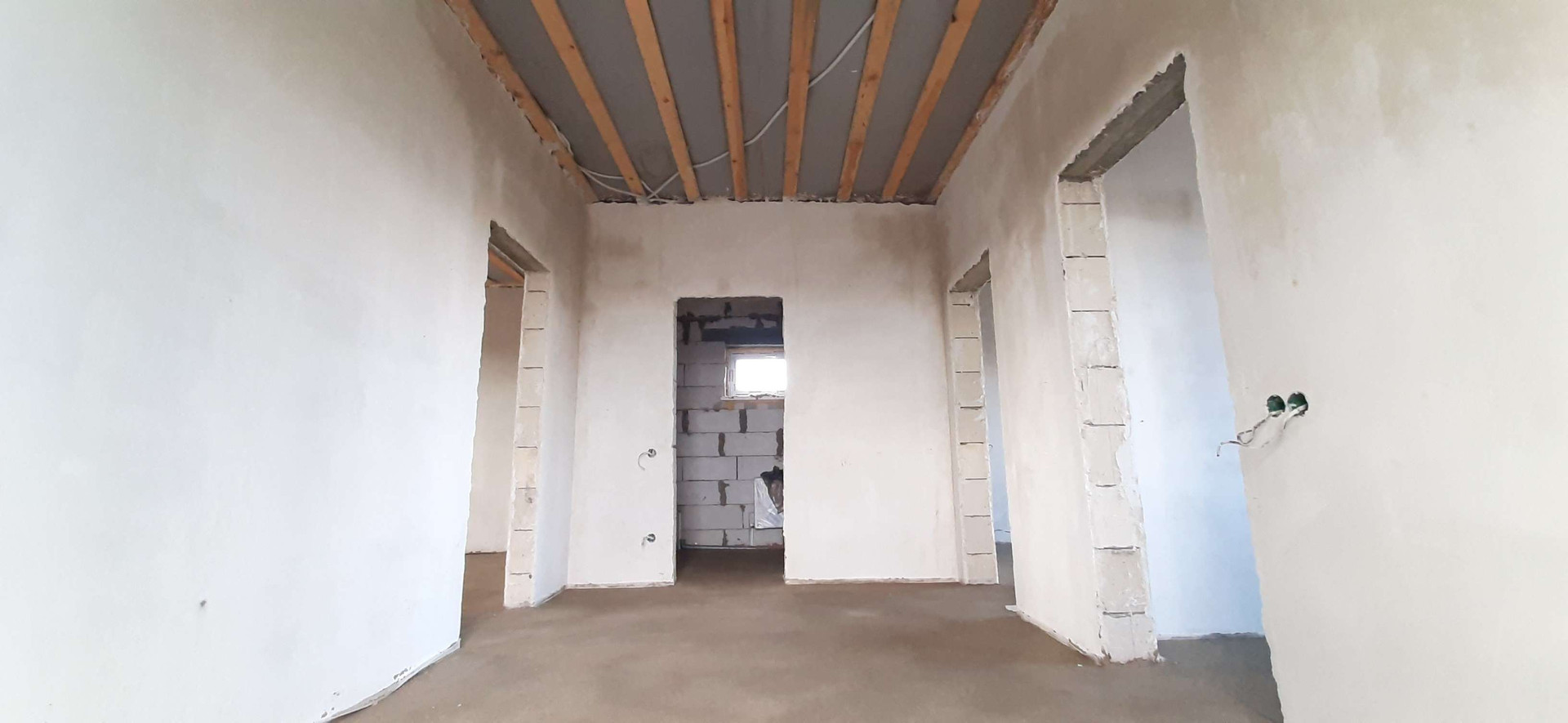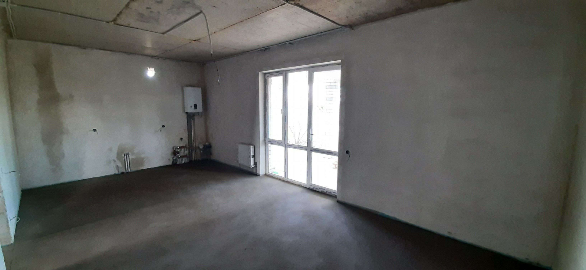 сделана качественная предчистовая отделка, гладкие белые стены подходят для покраски или поклейки обоев, идеально ровная механизированная стяжка пола