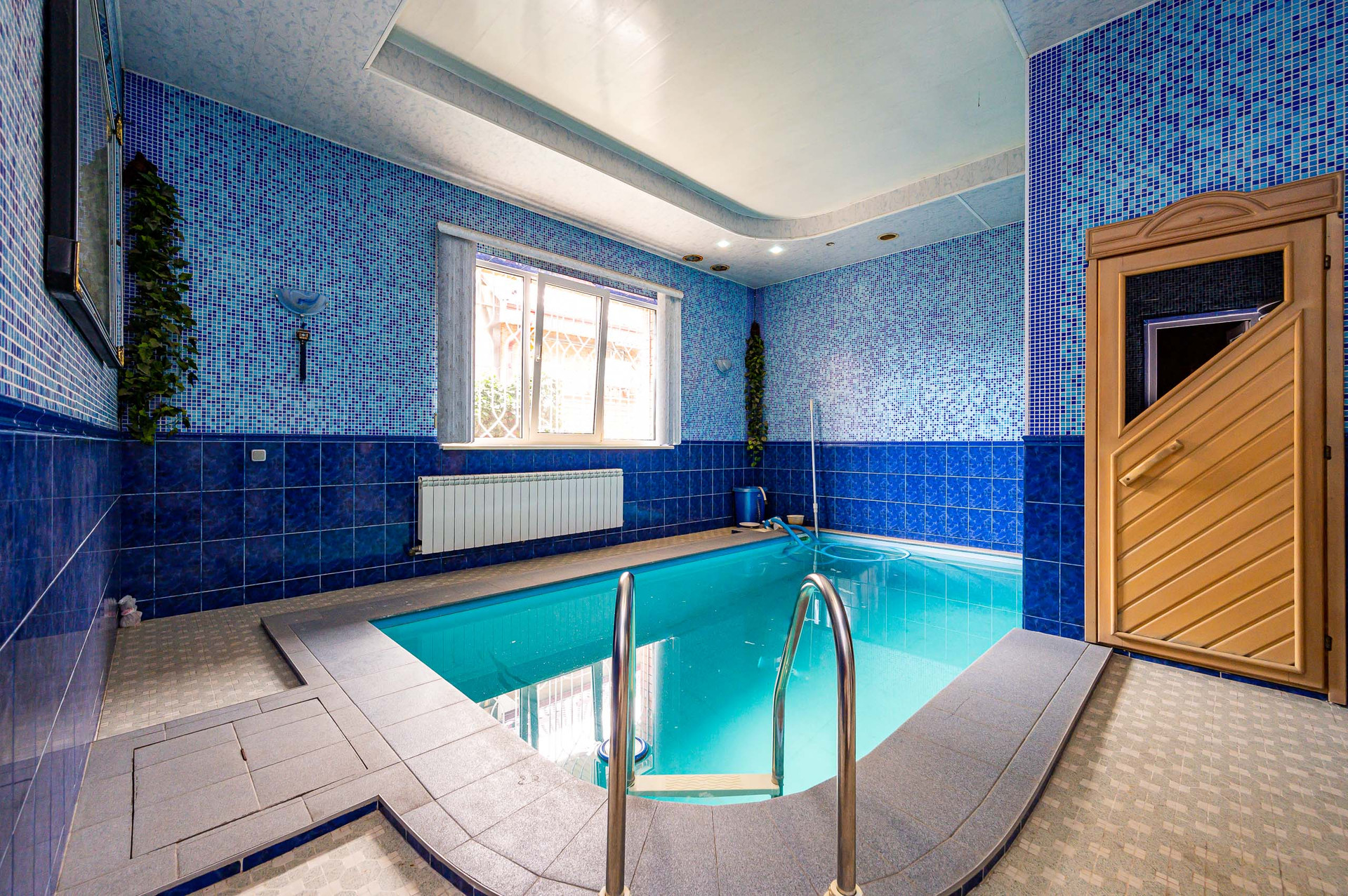 1 этаж - просторный холл 27, кладовая 13м2 из неё выход в гараж 30м2 на две машины, кабинет 19 м2, гостиная 24 м2, кухня 22 м2, с/у, котельная/постирочная с двумя выходами: во двор и в сауну с бассейном, расположенную внутри дома. По всему первому этажу тёплый пол (керамогранит). Межкомнатные двери и лестница на второй этаж из массива ценных пород дерева.