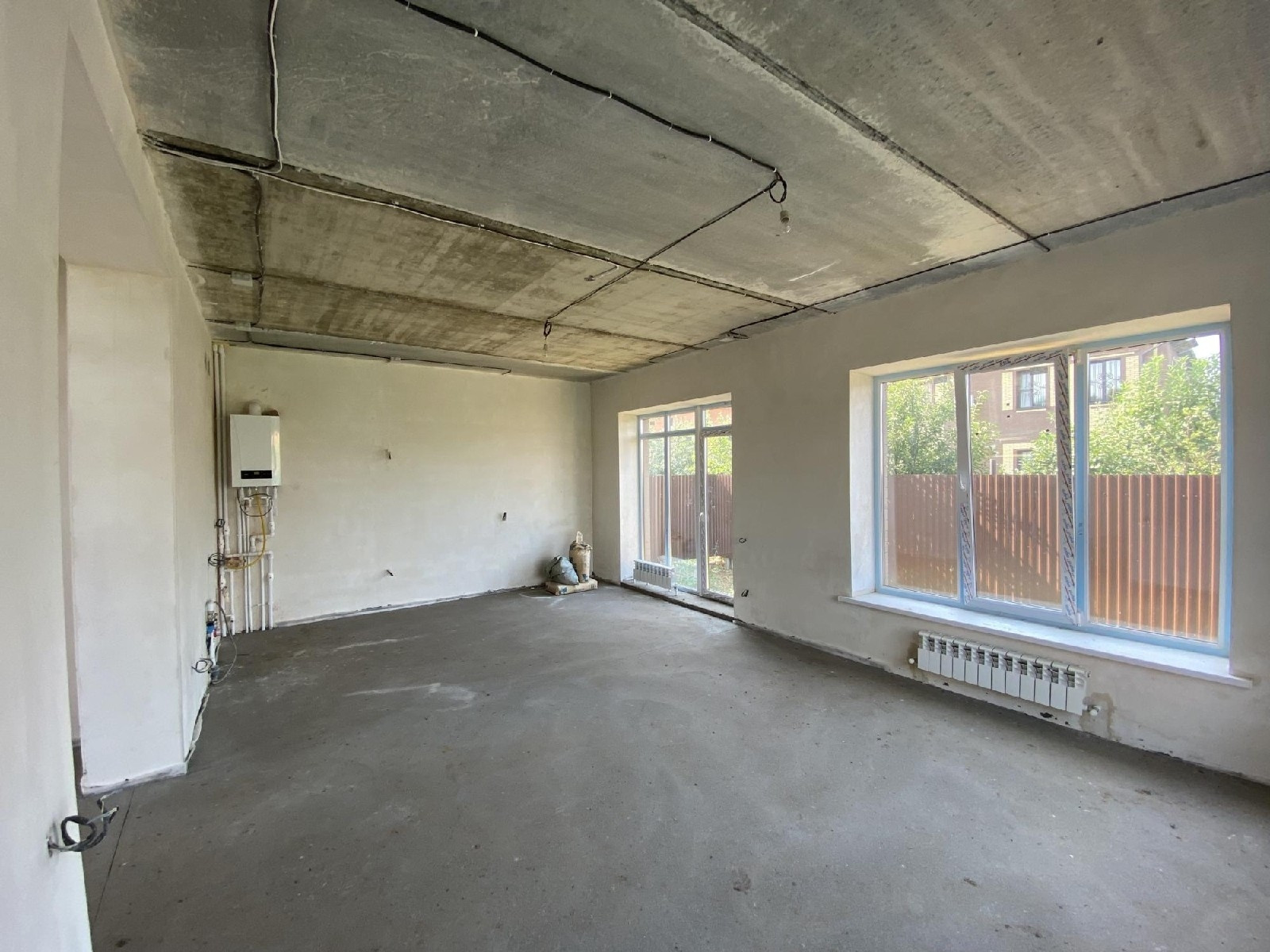 сделана качественная предчистовая отделка, гладкие белые стены подходят для покраски или поклейки обоев, идеально ровная механизированная стяжка пола